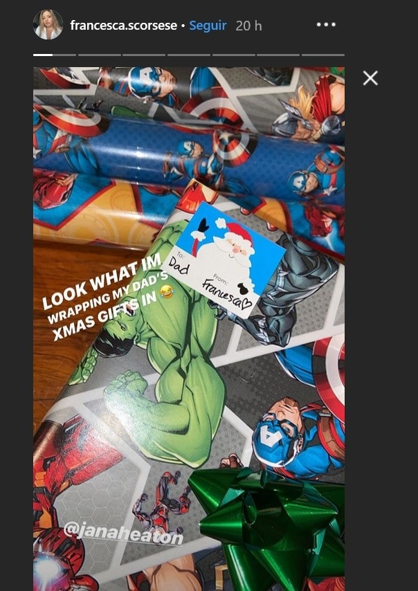 Para nadie es un secreto que las películas favoritas de Martin Scorsese no son las de superhéroes, y mucho menos aquellas que tienen que ver con el universo Marvel, quizá por ello la broma perfecta que pudo recibir en Navidad fue la que le hizo su hija Francesca.La joven de 20 años subió en su cuenta de Instagram los regalos navideños que le hizo a su famoso padre y lo primero que llamó la atención fue que la también hija de Helen Morris envolvió los presentes con papel de los personajes de Avengers."Miren con qué estoy envolviendo los regalos de mi padre", escribió la joven en su red social.La broma está cargada de un trasfondo ya que Scorsese afirmó, hace algunos meses, que para él las películas de superhéroes, específicamente las de Marvel, no eran cine."Las películas de Marvel son todo lo que los films de Paul Thomas Anderson, Claire Denis, Spike Lee, Ari Aster, Kathryn Bigelow o Wes Anderson no son. Cuando miro una película hecha por cualquiera de esos cineastas sé que voy a ver algo absolutamente nuevo y que experimentaré algo inesperado y difícil de definir", apuntó en una columna que escribió en el "The New York Times".JM