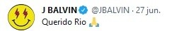 J Balvin y su pareja Valentina Ferrer ya son papás.La modelo argentina compartió una imagen en blanco y negro donde muestra el pie del bebé. En la publicación Ferrer señala que fue hace cuatro días cuando nació su primer hijo."Cuatro días del mejor amor", escribió en Instagram.En menos de una hora, la fotografía recibió más de 70 mil "me gusta" así como decenas de comentarios de felicitaciones por parte de amigos y seguidores de la pareja.Hace algunos días el padré del cantante de "Mi gente" dio la noticia del nacimiento de su nieto, con una imagen de caritcatura y confesó que el pequeño se llamaba Rio.El 27 de junio J Balvin compartió la noticia en Twitter, aunque sus seguidores no sabían de qué se trataba."Querido Rio", escribió.JB