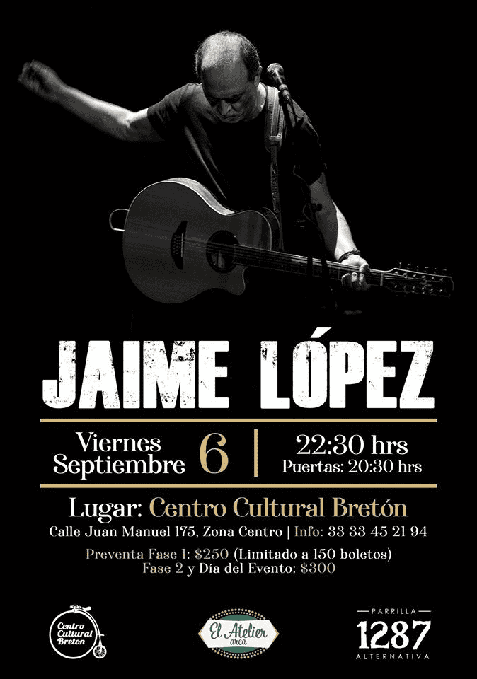 El compositor e intérprete de música popular mexicana, Jaime López, presentará un concierto en el Centro Cultural Bretón el próximo viernes 6 de septiembre.El galardonado por las Lunas del Auditorio como el “Precursor del Rock Mexicano”, presentará sus composiciones como “Corazón de Cacto”, “Chilanga Banda” (interpretada por el grupo Café Tacvba) y “Blue Demon Blues”, éste último compuesto especialmente al luchador Blue Demon. “Uno es el instrumento y de ahí va al cuerpo, a la voz, a la armónica, a la guitarra y a una infinita Ciudad a Solas al pie de la letra que es música”, escribieron organizadores. Recordando el monólogo “Ciudad a Solas” del compositor.Desde hace 25 años, Jaime López forma parte de la Sociedad de Autores y Compositores de México (SACM). Asimismo, es considerado uno de los más grandes compositores e intérpretes en la música popular mexicana de todos los tiempos y un pilar rotundo dentro del género rock. De acuerdo con la SACM, López “es un artista que a través de su trabajo ha dejado huella en la industria disquera” y en todo tipo de escenarios en el mundo del espectáculo. AC