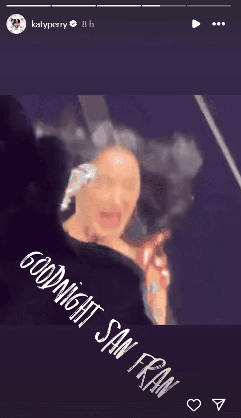 El día de ayer, Katy Perry casi sufre un accidente durante su concierto en San Francisco luego de que la estructura de tirolesa en la que estaba montada fallara y diera un ligero salto. El instante fue grabado por los asistentes y rápidamente se volvió viral en redes sociales.La cantante estaba interpretando la canción "Roar" cabalgando una mariposa gigante por encima de la audiencia cuando de repente la estructura saltó y dejó pasmados a los fanáticos y a la cantante.Perry debió de parar su canto para estabilizarse y rápidamente, con profesionalismo, retornó su concentración para completar el espectáculo. El incidente ocurrió en el Chase Center en un concierto agendado dentro del "Lifetimes Tour".Katy Perry habría sufrido un incidente similar hace unas semanas cuando se presentaba en Australia.Ante ello, la artista estadounidense se tomó las cosas con buen humor y parece que su última publicación en Instagram haría referencia al incidente. En la fotografía subida a manera de historia aparece su rostro con un gesto de susto luego de haber sentido el brinco de la estructura. La imagen está acompañada por el texto: "Buenas noches, San Francisco".* * * Mantente al día con las noticias, únete a nuestro canal de Whatsapp * * *OB