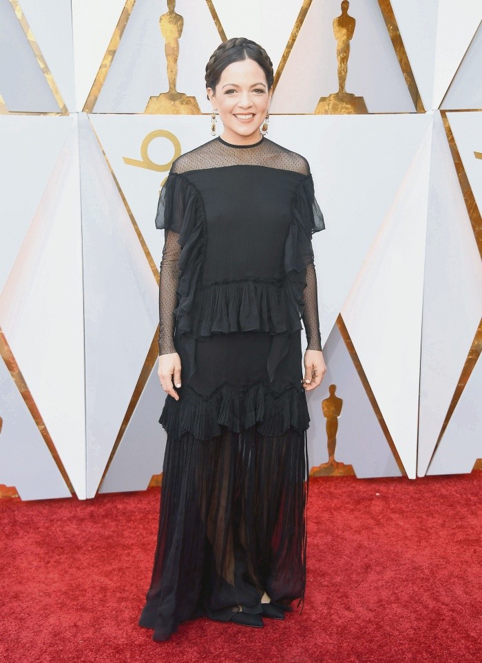El talento mexicano destacó durante la alfombra roja previa a la ceremonia de premiación de la 90 edición del Oscar; en ella, desfilaron los actores Gael García, Salma Hayek, Eiza González y Eugenio Derbez, junto con el director tapatío Guillermo del Toro, nominado a Mejor director, y Natalia Lafourcade, quien cantó en vivo, junto a Gael, “Recuérdame” de la película “Coco”.“Cuando escuché que la canción estaba nominada pensé, ‘Dios mío, ahora me van a hacer cantar’ y voy a dar lo mejor’”, declaró Gael a su paso por la alfombra. Por su parte, Lafourcade no dudó en expresar el amor que profesa por México y “decirle a toda mi gente que aquí estoy. Cuando uno va con amor en la vida trabajando por sus sueños suceden cosas que uno no imagina cómo estar aquí”. Y, más allá de sus palabras, lo demostró con su vestido negro largo con holanes, diseñado por el mexicano Francisco Cancino, el cual lució junto con aretes dorados elaborados en Oaxaca. Hayek optó por un vestido de tonalidad lila con detalles en diamante firmado por Gucci; aunque la mayoría de las impresiones que dejó fueron negativas, provocando comentarios en redes sociales que señalaban peyorativamente los abalorios de su vestuario… “Salma no supo que ponerse, y se puso todo”, se podía leer en Twitter. Eiza González —invitada junto con Eugenio Derbez como presentadores— llamó la atención con un vestido vibrante largo de color amarillo de la marca Ralph Lauren, combinado con accesorios discretos, lo que desembocó en un look minimalista que gustó a la mayoría de los espectadores, aunque fue catalogado como inadecuado para los premios de la Academia y más apropiado para una fiesta en la playa o para la temporada primaveral.Finalmente, el comediante y productor Eugenio Derbez mostró —a su paso por la alfombra— unas mancuernillas que le regaló su hair stylist Bernardo Javier, elaboradas con plata, de diseño sobrio y grabadas una con su nombre y la otra con el mensaje “Overboard”, el cual se relaciona con su más reciente película todavía en proceso de producción. La famosa productora de la película, “Coco” de Estudios Pixar, Darla K. Anderson vistió para la entrega de los premios Oscar un diseño exclusivo de la mexicana Carla Fernández. No cabe duda de que la noche de anoche el talento mexicano estuvo desbordado por todos los rincones del Dolby Theatre.Carla Fernández y Darla K. Anderson se unieron para crear un look totalmente novedoso y artístico. El conjunto está integrado por una capa de lana con un calado de piel dorada hecho a mano por artesanos mexicanos —el calado es una técnica conocida como charra— y muy famosa entre los miembros coloniales de esta comunidad por la sofisticación y porte que las piezas caladas en piel dorada representaban para ellos. Sin duda un diseño exquisito y elegante.Cabe destacar que Carla Fernández se posicionó como una de las más prometedoras diseñadoras mexicanas gracias a su estilo sólido que tienen que ver con la forma en la que se expresa a través de la arquitectura humana y de los colores sombríos de nuestro México, dando así como resultado un elegante y digno look de alfombra roja.