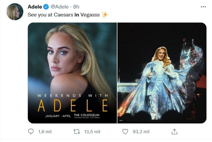 La cantante Adele anunció este martes que protagonizará un espectáculo fijo, conocido como residencia, en Las Vegas desde el 21 de enero hasta el 16 de abril de 2022.La británica, que actualmente reside en California, ofrecerá dos conciertos cada fin de semana bajo el título "Weekends with Adele" (fines de semana con Adele) en el Coliseo del Hotel Caesar, uno de los recintos más importantes de Las Vegas.Ante la inmensa demanda de entradas que han previsto los organizadores, se ha habilitado una página web en la que los seguidores de la artista podrán registrarse de manera anticipada para reservar sus boletos, que saldrán a la venta el próximo martes 7 de diciembre.¿QUÉ SON LAS "RESIDENCIAS EN LAS VEGAS?Las "residencias" fijas de Las Vegas son un tipo de conciertos, protagonizados por artistas de largo recorrido y renombre, que durante meses atraen a turistas de EU y otros países a Las Vegas.¿QUIÉNES HAN TENIDO SU PROPIO SHOW?Britney Spears, Celine Dion, Elton John, Rod Stewart y Mariah Carey son algunos de los cantantes que han tenido su propio espectáculo en esa ciudad.En el caso de Adele, protagoniza su propia función cuando acaba de publicar su cuarto disco de estudio, "30", un trabajo de sonidos clásicos que versa sobre su divorcio y maternidad y que lleva varias semanas en el número uno de las listas internacionales, además de cosechar recibido excelentes críticas. ER