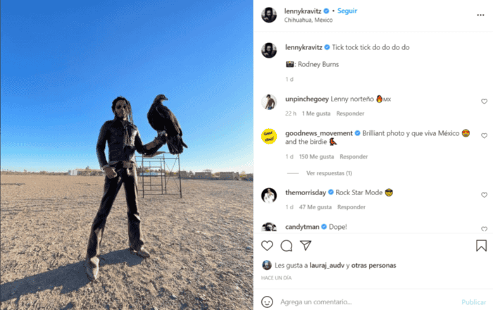 Lenny Kravitz visitó México y se volvió tendencia por sus fans. El cantante reveló que se encuentra en Chihuahua, más concretamente en el desierto de esta ciudad.Fue a través de su cuenta de Instagram que Kravitz dio a conocer que está en el país, al subir una foto en la que se ve en el desierto y donde posa junto a un cuervo.México sigue siendo de los lugares preferidos para que las celebridades Hollywoodenses vacaciones, hace unas semanas fue Dua Lipa en Ciudad de México y días más tarde se le vio a la actriz Evan Rachel Wood disfrutando de las playas de Los Cabos.Otros famosos como Katy Perry y Orlando Bloom también visitaron México el miércoles para tomar una cena romántica en un lujoso restaurante de Los Cabos, a donde Orlando llevó a Katy a festejarle su cumpleaños número 37.Al día siguiente mientras Perry y un grupo de amigos se asoleaban y disfrutaban de un lujoso resort, Orlando decidió ir a divertirse a la playa y correr por la arena.Con información de SUN.AC