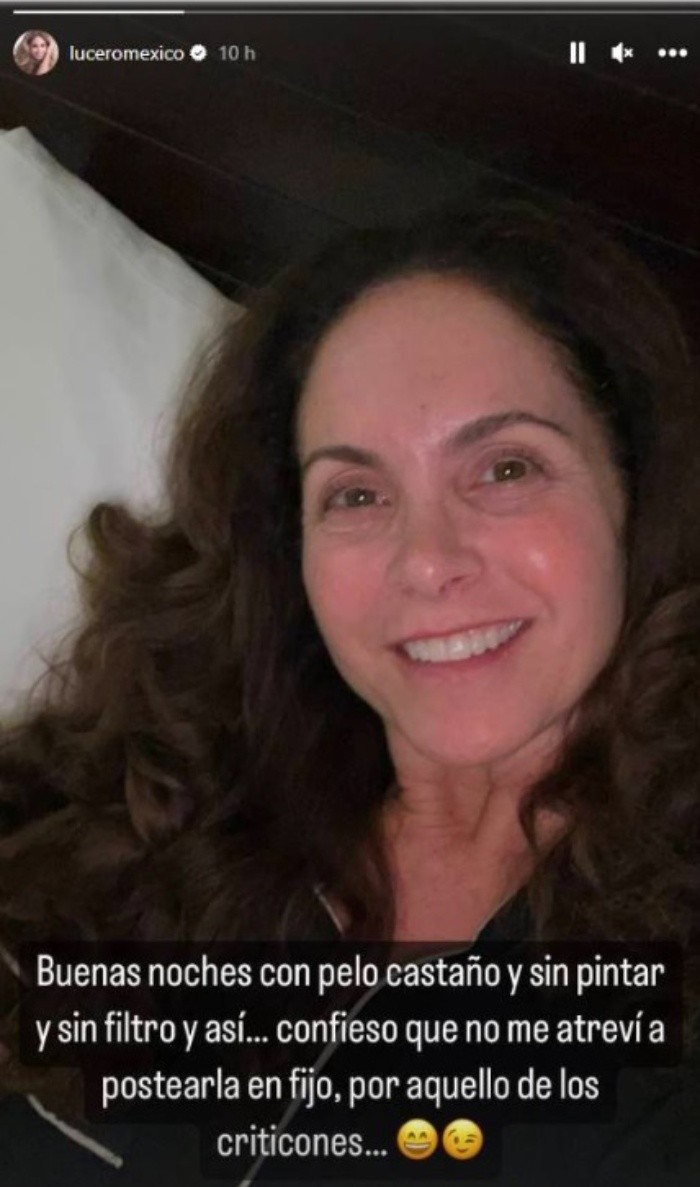 Lucero hizo una confesión en redes sociales: le teme a los criticones, por eso no publicó una selfie sin maquillaje ni filtros, sólo la posteó en sus estados, la cantante, que este 2023 cumplirá 53 años presume con orgullo su rostro al natural.En sus redes, la exesposa de Mijares suele postear todo tipo de contenido, incluso fotos donde los filtros y el maquillaje son muy notorios.Recientemente, la intérprete de "Ya no" colgó una instantánea con poco maquillaje y con su característica sonrisa a todo lo que da, tenía mucha hambre después de un concierto que ofreció en el Auditorio Nacional junto a Mijares."Terminando el show y muriendo de hambre, pero ya feliz con mi sándwich. Qué publicazo precioso tuvimos en este 4º #hastaquesenoshizo @oficialmijares y yo les agradecemos su maravillosa presencia. Son siempre un enorme regalo al corazón, gracias".Sus fans admiraron su belleza y lo bien que lucía su piel, así que no dudaron en hacerle una importante recomendación: "Qué hermosa eres Lucero, tienes un rostro bellísimo, jamás de lo jamases te hagas algo en esa cara preciosa que Dios te dio. No necesitas ni maquillaje, porque la que es hermosa lo es hasta con la cara lavada. Dios te bendiga siempre hermosa y talentosa mujer", le escribió una fan desde España.Aunque Lucero no se atrevió a publicar su foto al natural, en redes circuló la instantánea en la que luce sin maquillaje y sin filtros."Buenas noches con pelo castaño y sin pintar y sin filtro y así ... confieso que no me atreví a postearla en fijo, por aquello de los criticones", escribió.Sus fans no tardaron en reaccionar y aplaudir el que sea auténtica, además halagaron lo bella que luce a pesar del paso del tiempo."No hay mujer más bella qué aquella que ama sus imperfecciones aquella que no tiene complejos y tú luces hermosa a tu edad siempre bella, mi actriz favorita de todos los tiempos, aplaudo su valentía ante un mundo lleno de perfectas con mil filtros", escribió uno de sus miles de seguidores.MF