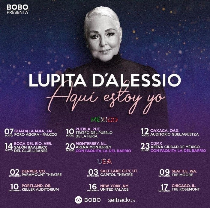 Con más de 50 años de trayectoria, Lupita D´Alessio es sin duda un símbolo de la música en habla hispana, su voz y su forma de interpretar son parte ya de la cultura musical no solo de México sino de muchos otros países. De hecho el próximo 7 de mayo se presentará en el Foro Ágora de PALCCO con su espectáculo “Aquí estoy yo”.El año pasado Lupita cumplió uno de sus más grandes sueños al poder re grabar completamente en vivo sus más grandes éxitos en un concierto desde la Arena Ciudad de México, donde conquistó a más de 15 mil personas. “Ese Hombre”, es el título del primer sencillo que se desprende de este nuevo CD + DVD, el cual saldrá a la venta de manera física y digital el próximo 29 de abril.Este 2022, será sin duda el año de Lupita D´Alessio ya que además de estrenar su CD+ DVD en vivo desde la Arena Ciudad de México, será honrada con el premio “Leyenda” en la próxima edición de los Latin American Music Awards, la cual se llevará a cabo el próximo 21 de abril en la ciudad de Las Vegas. Cabe mencionar que en el año 2019 la academia le otorgó el Grammy a la Excelencia Musical, galardón que solo se da a los más grandes de la industria.Lupita D´Alessio no para y por eso continúa con su gira de conciertos la cual la llevará a recorrer México y gran parte de Estados Unidos. En nuestro país la intérprete combinará su “Aquí Estoy Yo Tour”, con algunas presentaciones especiales al lado de Paquita la del Barrio, mientras que en EU, continuará con la segunda etapa de su gira a partir del mes de septiembre.AC