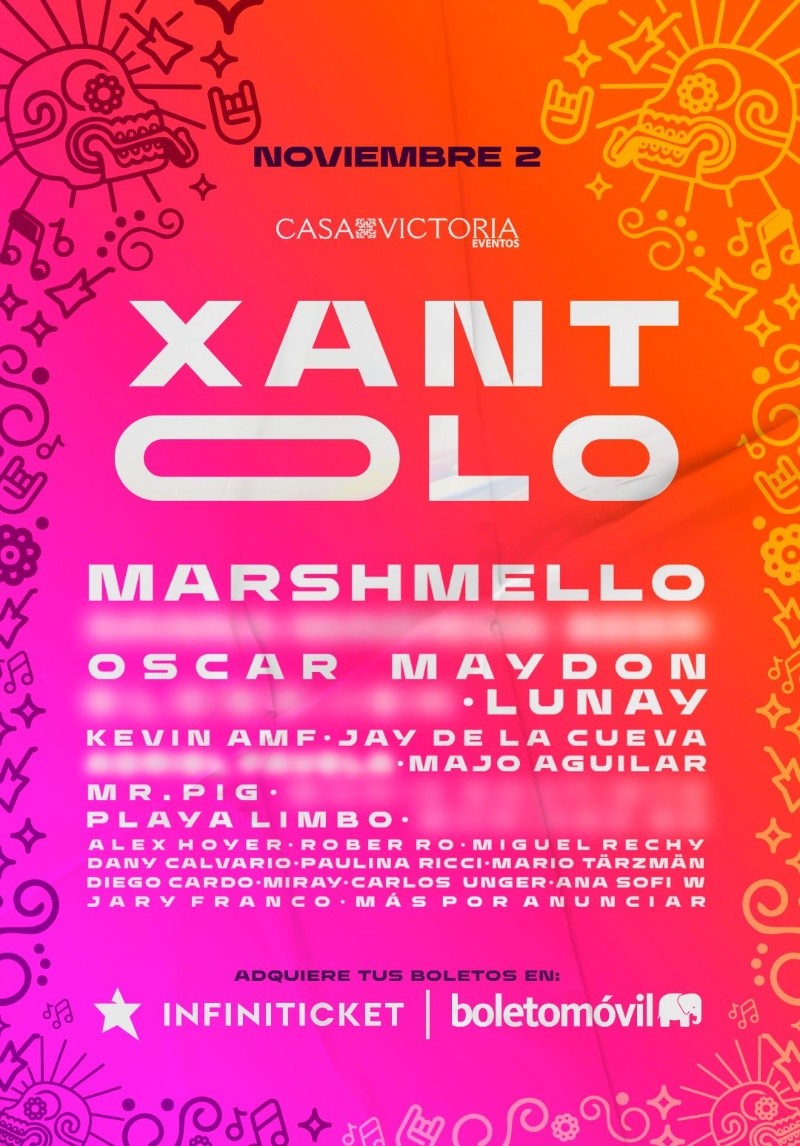 La espera ha terminado. Xantolo Festival regresa en su segunda edición para una celebración aún más espectacular del Día de Muertos. El próximo 2 de noviembre, Casa Victoria en Guadalajara, Jalisco, se transformará en el epicentro de una fusión única de tradición, modernidad, y entretenimiento de clase mundial. De hecho, los boletos están a la venta desde el pasado 19 de julio.En esta edición, Xantolo Festival contará con un lineup de artistas que abarcan diversos géneros musicales para todos los gustos. La primera entrega del cartel la encabeza el aclamado DJ internacional Marshmello –quien por primera vez se presentará en Guadalajara–. Además, la extensa lista de talentos incluye a Oscar Maydon, Lunay, Mario Bautista, y más de 20 artistas en dos escenarios. Será todo un día que promete ser inolvidable, mezclando vibrantes actuaciones en vivo con la rica herencia cultural del Día de Muertos. Xantolo Festival no es solo un concierto; es una experiencia cultural completa. Los asistentes podrán sumergirse en una atmósfera llena de altares monumentales conmemorando a los difuntos de una manera majestuosa y artística.Habrá gastronomía y mixología con sabores tradicionales que capturan la esencia de la festividad, así también habrá exhibiciones de arte y un mercado de artesanías para explorar y disfrutar. Habrá concurso de catrinas, áreas para fotografías, y experiencias sensoriales que harán de este evento una celebración como ninguna otra.Además, con tu boleto de Xantolo Festival, podrás visitar Panic Park, el parque temático más grande de Latinoamérica con atracciones de terror, añadiendo una capa extra de emoción y aventura a tu experiencia. La venta general de accesos está disponible para todo el público a través de Infiniticket y Boletomóvil.MF
