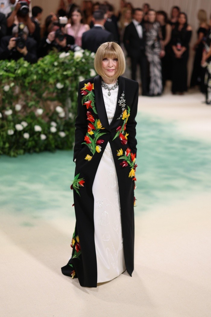 La Gala del Met representa uno de los momentos más icónicos de la moda, es por eso que muchas celebridades de talla internacional lucen sus atuendos en la temática de este año. "El Jardín del Tiempo" fue el emblema principal para mostrar atuendos llenos de fantasía y tonos florales, tal es el caso de celebridades como Jennifer López, quien lució un atuendo ajustado lleno de su peculiar estilo en transparencias, eso sí, lo acompaño con unas flores plateadas al estilo diosa de un Jardín del Edén, mientras que Zendaya, otras de las celebridades host de la gala, lució un vestido en tonos azules y verdes muy adoc a lo que esperamos de una celebridad de su talla. Este año ambas artistas son copresidentas del evento anual de recaudación de fondos del Museo Metropolitano de Arte. Y ambas recibieron vítores de la multitud de entusiastas de la moda que se agolpaban cerca de la entrada.En ambas estrellas los diseñadores invirtieron muchas horas para presentar un look que busca la inspiración de los cuentos de hadas en tiempos contemporáneos, Schiaparelli hizo que el vestido de López luciera casi como una segunda piel y, en el caso de Zendaya, Margiela su diseñadora, busco asemejar los tonos de un pavo real con los tonos azules y verdes acompañados de un maquillaje dramático y gótico. Otro de los Spots en la red carpet verde fue Colman Domingo, quien se puso una chaqueta marfil con una capa, sosteniendo un ramo de alcatraces blancos, mientras que Tyla eligió un vestido con textura de arena. En la mano llevaba un reloj de arena al subir por las escaleras del museo.Sam Smith tenía rosas metálicas plateadas y doradas en la cintura de su chaqueta, y Jack Harlow también optó por flores, pero sutilmente con un boutonniere floral plateado y perlado.La mente maestra de la gala, Anna Wintour, lució un abrigo negro adornado con flores multicolores. Su compañero de copresidente de la gala, Bad Bunny, se vistió completamente de negro.Una embarazada Lea Michele lució un modelo de Rodarte, inspirado en la colección primavera/verano 2012 de la marca."Me siento honrada de estar aquí y traer a mi bebé conmigo", dijo Michele. "No creo que me permitieran traer a alguien más, pero traigo uno", dijo entre risas. "Estoy muy agradecida. Me siento muy hermosa, ya sabes, en este embarazo".SM
