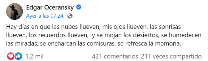 Tras darse a conocer audios en los que el cantautor Edgar Oceransky expuso su postura sobre su agrado a las adolescentes, el Teatro Diana anunció que el show que el cantante ofrecería en Guadalajara el próximo 25 de marzo ha sido cancelado.Aunque la publicación del Teatro Diana no explica los detalles de la cancelación, algunos internautas han celebrado que el show ya no se realice, luego de que el audio filtrado de Oceransky durante un concierto hace años, causa revuelo entre el público que ya lo señalan como pederasta.El Teatro Diana indicó que con el show cancelado en Guadalajara, el reembolso comenzará el lunes 14 de marzo mediante el mismo canal en que se hizo la compra de los boletos, ya sea mediante la plataforma de Ticketmaster.com.mx o en las taquillas del recinto tapatío, en donde se detalla que hay que presentar la tarjeta con la que se hizo la compra, el INE y los boletos correspondientes, además de acatar las medidas y protocolos anti-COVID.El Teatro Diana no es el único recinto que ha anunciado que el show de Oceransky es cancelado, pues el Auditorio Nacional, de la Ciudad de México, también compartió que el concierto para el 16 de marzo, en el mencionado recinto, también quedará cancelado y el reembolso comenzará a partir del 15 de marzo.Entre las publicaciones más recientes de Ocesansky en sus redes sociales, el cantante compartió una publicación hace un día a través de Facebook: “Hay días en que las nubes llueven, mis ojos llueven, las sonrisas llueven, los recuerdos llueven, y se mojan los desiertos, se humedecen las miradas, se encharcan las comisuras, se refresca la memoria”, escribió el cantante, lo que ha generado que los fans se lancen contra él reclamándole su falta de respeto hacia las mujeres.JL