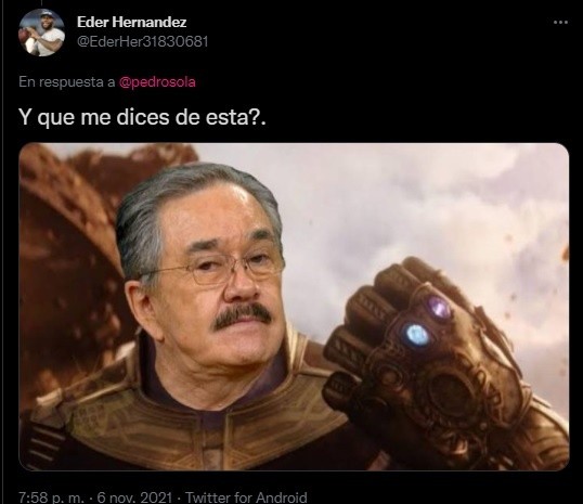 De nuevo, Pedro Sola está siendo criticado por sus comentarios negativos hacia las actrices Salma Hayek y Angelina Jolie por su aparición en la película de Marvel “Eternals”, que se estrenó el pasado jueves en cines mexicanos.El conductor de “Ventaneando” aseguró a través de Twitter que las actrices de “Eternals” parecían “abuelitas”, lo que provocó que los fans de la película y de las actrices se lanzaran en su contra.No conforme con esto, Pedro Sola continúo diciendo que Hayek y Jolie estuvieron aburridas en el filme: “Las máximas estrellas Salma y Angelina, ambas fatal, un par de mujeres aburridas que se ven las abuelitas de los superhéroes”, dijo Sola.“Pero a ver Pedrito, sí le sabes a esto de Marvel y todo el arguende??? o sólo la viste y no te gustó??? Porque hay que ser fan de Marvel para opinar”, escribió un usuario en respuesta al conductor. Otro más agregó un montaje de Sola usando el guantelete del infinito, mismo que usó “Thanos” y escribió: “Y qué me dices de esta?”.AC