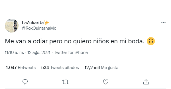 Una decisión personal de la chef mexicana Rox Quintana ha sido considerada “polémica” por miles de internautas en Twitter, plataforma en la que la ex participante de Master Chef México compartió una solicitud común por parte de muchas parejas con respecto a su boda.“Me van a odiar pero no quiero niños en mi boda” publicó en su cuenta de Twitter el pasado 12 de agosto y las opiniones no tardaron en llegar, sobre todo aquellas en que critican a Quintana por dicha petición; otros usuarios apoyaron su decisión y aprovecharon para compartir algunos motivos por los que en este tipo de recepciones lo ideal es que no haya menores.Rápidamente en redes sociales comenzó a viralizarse dicha elección personal y los ataques hacia ella, por lo que la chef también se tomó el tiempo de responder algunos comentarios: "No es porque no me gusten los niños baby. Es que para mi gusto no es evento para niños. Justamente si van a estar dormidos en una silla y hambrientos que mejor se queden en casa, cómodos y con cena rica. Y yo si he visto varias bodas donde los niños causan problemas, por cierto", respondió en otro tuit.La jalisciense también se tomó con humor las críticas en su contra y la atención que recibió por parte de algunos ‘haters’: "Lo que dije: No quiero niños en MI boda. Lo que los pendejos entendieron: Odio a todos los niños y deberían de vivir en una jaula y ser maltratados”, compartió en Twitter un día después.Rosa María Quintana Campos es originaria de Zapopan, Jalisco y fue participante de la emisión televisiva Master Chef México en el 2018, en donde quedó en quinto lugar. En sus redes sociales comparte algunos momentos de su vida profesional y personal, en familia y con su pareja, la joven Julie Payan. Sigue leyendo…Si te interesó esta noticia y quieres saber más, entonces descarga y descubre INFORMAPlus, la aplicación digital de EL INFORMADOR, en donde tenemos contenidos exclusivos, seleccionados por nuestros editores, para darles una experiencia más completa a los lectores.Descarga la aplicación y pruébala GRATIS por 30 días.Para iOS: https://apple.co/35jaVgbPara Android: https://bit.ly/3gwVSEVSi eres suscriptor de EL INFORMADOR tu acceso está incluido, solicítalo al 33 3678-7777