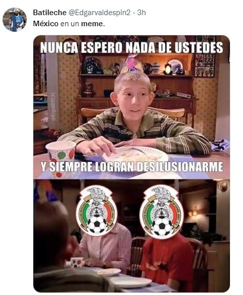 El partido de la Selección Mexicana contra Arabia Saudita (2-1) además de tristezas por su eliminación en la fase de grupos del Mundial Qatar 2022, dejó una serie de memes.En redes sociales incluso le han hallado parecido a Luis Chávez, el seleccionado mexicano con un cantante español muy famoso.¿C Tangana eres tú? Los usuarios no han dejado pasar el gran parecido físico entre Luis Chávez y el compositor de éxitos cómo "Nunca Estoy", "Demasiadas Mujeres" y "Tú me dejaste de querer". En Twitter, algunos memes aparecieron tras la derrota del Tri en Qatar.MF