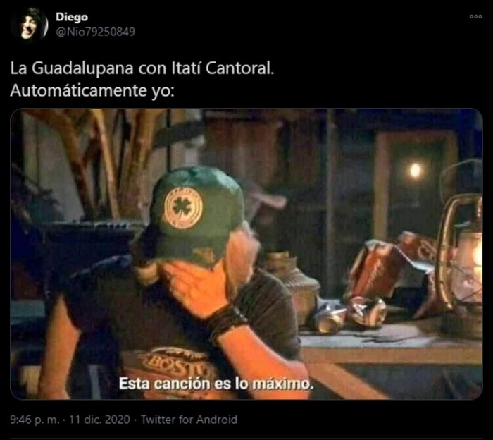 Este 12 de diciembre, usuarios de redes sociales recordaron con humor, con motivo del día de la Virgen de Guadalupe, la interpretación musical de la actriz mexicana Itatí Cantoral. Fue hace unos años que la reconocida villana de ''María la del Barrio'' (''Soraya Montenegro'') entonó las mañanitas a la Virgen, y debido a la manera en que ocurrió un video se volvió viral, y como cada 12 de diciembre desde entonces, se volvió tendencia en redes sociales.OF