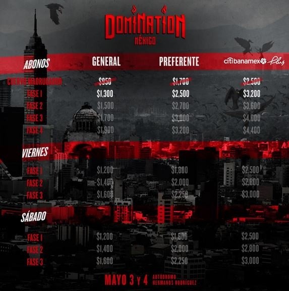 El nuevo festival de México de metal ya tiene cartel ya este día fue filtrado, y minutos después confirmado, el talento con el que contará: Kiss, Alice Cooper, Slash, Limp Bizkit, Dream Theater son quienes lo encabezan.En el evento que se desarrollará el viernes 4 y sábado 4 en el Autódromo Hermanos Rodríguez, también cuenta con Apocalyptica, Dead Kennedys, Trivium, Meshuggah y una docena más de bandas.El Domination Mx se realizará este año en lugar del Corona Hell and Heaven, y será el primer festibal del metal que organice en completa autonomía Ocesa, luego de liderear festivales como el Vive Latino, o el Corona Capital.Estos son los precios de los boletosEl 21 y 22 de enero se llevará a cabo la preventa Citibanamex