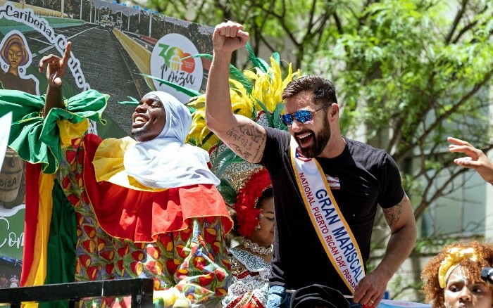 Miles de banderas de Puerto Rico pintaron este domingo de rojo, azul y blanco la Quinta Avenida de Nueva York, donde retumbaron los ritmos de bomba y plena autóctonos de esa isla, en la celebración del tradicional desfile de esta comunidad, que tuvo como mariscal a Ricky Martin.Como cada año puertorriqueños de todas partes de EU. y otros que viajan desde la isla se encontraron en Nueva York desde temprano en la mañana para celebrar su presencia, cultura, logros y aportes a este país, en un día en que contaron con un buen clima.Aunque hubo menos asistencia que en ocasiones anteriores, su alegría y su conocido grito de "yo soy boricua pa' que tú lo sepas" se sintió a lo largo de la ruta del desfile.La aparición de Ricky Martin en la carroza del municipio de Loíza Aldea, al que dedicaron el festival en el 300 aniversario de su fundación, provocó la locura total del público y de medios de comunicación, mientras la estrella latina saludaba y bailaba al ritmo del grupo de bomba que le acompañó."Ricky, Ricky", gritaban sus fanáticos en un intento por llamar su atención mientras tomaban fotos y videos del puertorriqueño, lo que también hicieron varios policías que prestaron este domingo estrecha vigilancia al evento.Martin, que vistió bluyines y una camiseta negra de manga corta con la bandera de su país y que también estuvo acompañado por su esposo, Jwan Yosef, no dejó de sonreír, de saludar y de moverse con el sonido de los tambores de Loíza, pueblo de la costa muy rico en costumbres y tradiciones y al que el artista ayudó tras el paso del huracán María."Estoy aquí celebrando nuestra cultura, nuestra música, nuestra comida, lo que somos, nuestra diversidad, lo que hay que hacer siempre", dijo a la prensa desde la carroza y en medio de la algarabía de su comunidad.Martin aseguró que "Puerto Rico nunca se ha caído, vamos pa'rriba", en referencia a los dos huracanes que azotaron la isla en septiembre del 2017.La carroza estuvo presidida por grupos de baile de bomba y plena, ritmos autóctonos puertorriqueños, que hoy retumbaron con fuerza en la Quinta Avenida, así como por los vejigantes, personajes del folclor de la isla, con su vestimenta de brillantes colores y sus máscaras de cuernos.Tras el corte de la cinta que da paso al inicio del esperado evento, bajo el lema "Un pueblo, muchas voces", comenzaron a marchar puertorriqueños en las diversas agencias del gobierno entre los vítores de sus compatriotas, que este año no contaron con el alcalde de la ciudad, Bill de Blasio, pese a ser una cita a la que no faltan los políticos, encabezados por el gobernador Andrew Cuomo.De Blasio estaba este domingo en campaña política en Iowa luego de haberse sumado el pasado mes a la lista de demócratas que buscan la nominación de su partido a la presidencia de Estados Unidos para las elecciones generales del próximo año.Mientras, Cuomo fue recibido entre vítores y aplausos por los que observaban el desfile desde las vallas de seguridad, a los que aprovechó para estrechar sus manos a lo largo de la ruta."Cuomo te quiero" y "Cuomo, Cuomo" gritaban los puertorriqueños, que no olvidan la ayuda que ofreció a la isla desde el primer momento tras el paso de María.Otra que estrechó manos de un lado y otro de la Quinta Avenida y cuya presencia provocó gran algarabía fue la joven congresista Alexandria Ocasio Cortez, quien no quiso dar declaraciones a la prensa.Este año el festival reconoció a la Fundación Ricky Martin por su esfuerzo combatiendo la trata humana, así como al cantautor José Feliciano, el primer latino en hacer un exitoso "crossover" al mercado anglo y que ha permanecido por décadas en la preferencia del público.También al historiador y profesor Félix Matos Rodríguez, el primer latino en presidir la Universidad pública de la ciudad de Nueva York (CUNY) y al famoso exjugador de golf Chic Rodríguez, entre otras figuras de la música, el deporte, o la educación.JB