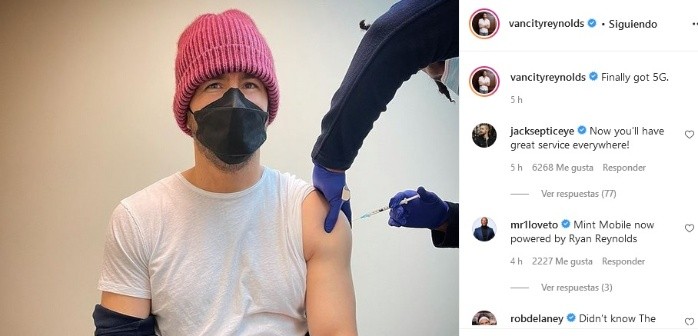 Ryand Reynolds compartió en sus redes sociales que ya fue vacunado contra el COVID-19 y lo tomó con humor y sacó una risa a sus fans.El intérprete que da vida al mercenario Deadpool en la pantalla grande escribió en la publicación "Finalmente tengo 5G", haciendo referencia a una de las teorías de conspiración que han girado entre la sociedad debido a la eficacia de las vacunas.Dicha historia urbana mencionaba que las vacunas tendrían un microchip para poder controlar a las personas y que éstas fueran identificadas por una red 5G; sin embargo estas fórmulas han sido desarrolladas por los laboratorios para frenar los contagios de COVID-19, los cuales ascienden a más de 128 millones de casos positivos a lo largo de más de un año. Ante la publicación varias celebridades dejaron su comentario así como sus carcajadas debido a la broma y referencia que usó Ryan Reynolds para su publicación.Por otro lado algunos hicieron referencia a que ellos pensaban que Deadpool era inmortal, lo cual también provocó risas entre los seguidores del actor de "Detective Pikachu".La actriz Amber Heard, expareja del actor Johnny Depp, también recibió en las últimas horas la vacuna contra el COVID-19, tal como lo compartió en su publicación de Instagram.Con más de 94 mil me gusta, la intérprete de Mera en "Aquaman" mostró cuando salía del centro de vacunación y en su mano izquierda sostiene unos papeles, a la vez que levanta el brazo derecha y deja ver un curita sobre donde le aplicaron la inyección."¿Alguien dijo "reina de las vacunas"?, fue el mensaje que escribió la intérprete en la publicación donde ella porta un cubrebocas bicolor.jb
