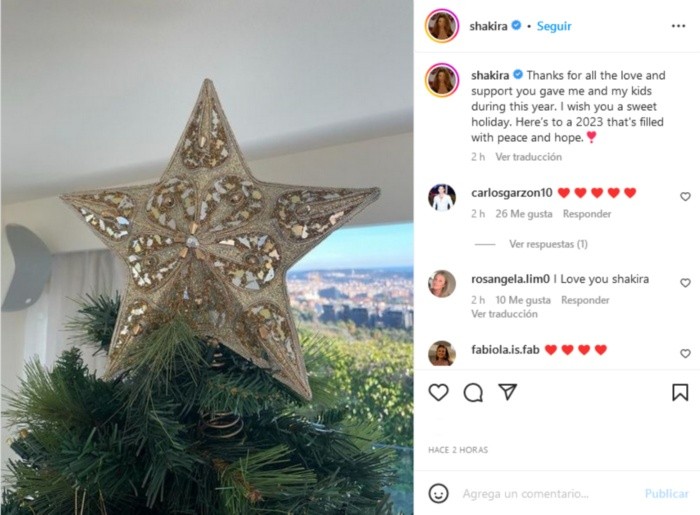 Este año que termina, ha sido oscuro para Shakira, pues a pesar de que junto a Piqué eran vistos como una de las parejas más consolidadas del espectáculo, el mundo entero se sorprendió luego de su repentina ruptura, con ello, llegó la lucha legal por la custodia de sus hijos Milán y Sasha, además del grave estado de salud de su padre William Mebarak, sin embargo, la colombiana no ha dejado de lado el espíritu navideño, pues mandó un mensaje de amor para sus fanáticos.Recordemos que después de la desilusión amorosa, diversas personas le externaron su cariño a través de las redes sociales.Fue a través de Instagram, que la intérprete de "Ojos Así" dio a entender lo difícil que fue este año y agradeció a cada uno de sus fans por las muestras de afecto."Gracias a todos por el amor y el apoyo que me dieron a mí y a mis hijos durante este año. Les deseo una dulce Navidad. Por un 2023 que esté lleno de paz y esperanza", escribió.El mensaje acompañó la fotografía de la estrella de su árbol, por lo que sus fanáticos también le desearon una feliz Navidad.Hasta el momento, la famosa no ha posteado instantáneas con sus hijos.Las fechas decembrinas traerían desacuerdos entre Shakira y PiquéLa Navidad y el Año Nuevo llegaría para "tumbar" el acuerdo legal entre Shakira y Piqué por la custodia de sus hijos, ya que al parecer, la expareja ya se enfrentó a su primera discusión por definir quién pasará cada fecha con los menores.Resulta que la cantante, quien tendría todo listo para moverse hacia Miami, pasará el 25 de diciembre en Dubai junto a sus hijos. Las vacaciones se extenderán hasta el 30 del mes para que Milan y Sasha regresen con su padre a Barcelona para pasar Año Nuevo y celebrar el Día de Reyes.De acuerdo con el podcast Mamarazzis, el pleito comenzaría debido a que los niños tienen que comenzar las clases el 5 de enero en su nueva escuela de Miami, lo que dejaría fuera del acuerdo a la pareja de la joven Clara Chía.OF