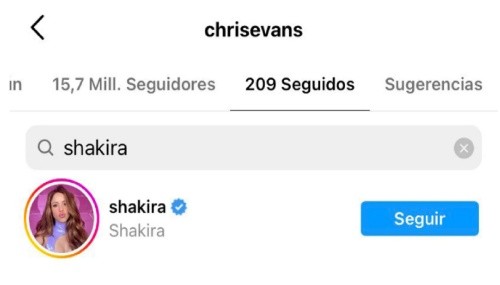 Los rumores de la supuesta infidelidad que Piqué le habría hecho Shakira sigue en tendencia, y tras este caso algunos hombres se sumarían a la lista que admiran a la colombiana, pues el famoso actor Chris Evans comenzó a seguirla en su cuenta de Instagram.Luego de que el diario español "El periódico" publicara que Piqué le había sido infiel a Shakira ,y asegurara que el futbolista vive desde hace semanas solo en su apartamento, la pareja fue vista junta esta semana, sin embargo, no han dado declaraciones sobre los rumores.Ahora el "Capitán América" aparece al rescate, pues diversos usuarios se percataron este jueves, que el actor le devolvió el follow a Shakira en la plataforma de Instagram.La colombiana, además, sigue a actores como Henry Cavill, cuya interacción causó revuelo en las redes, luego de que se viralizara el video de la alfombra roja de la película "The Man from U.N.C.L.E." donde él interrumpe su entrevista para admirar a Shakira. Asimismo dio follow al actor americano Scott Eastwood y Sam Heughan.MF