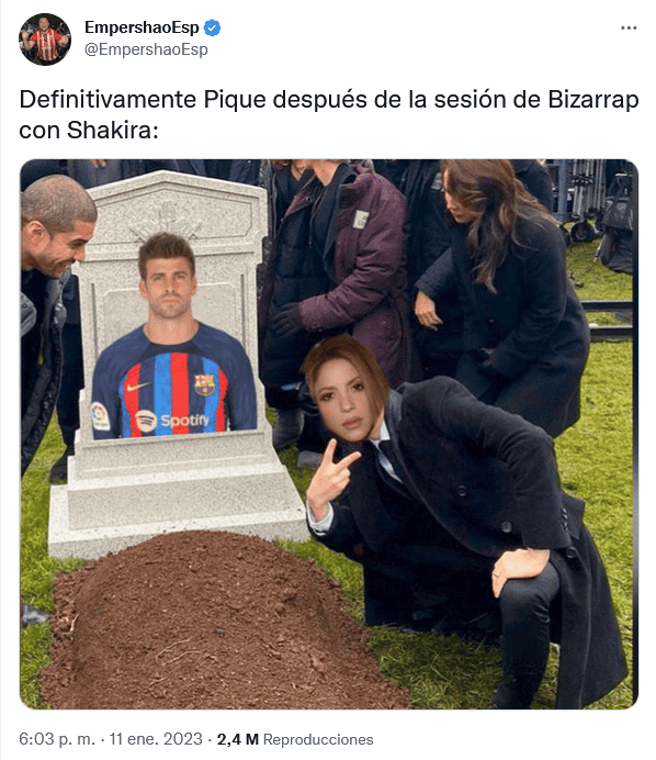 La cantante colombiana Shakira lanzó una nueva canción dedicada a su última pareja, el exfutbolista Gerard Piqué, y los memes no tardaron en inundar las redes sociales.Con el título de Music Sessions #53, y en colaboración con Bizarrap, el videoclip ha desatado los comentarios más diversos de parte de quienes reciben de buen agrado la acción y quienes critican lo que ha hecho Shakira tras su ruptura con Piqué el año pasado.En la canción de poco más de tres minutos, Shakira hace referencias a la relación entre ella, Gerard Piqué y su nueva novia, Clara Chía.Cada uno de los versos, el video y todo lo relacionado con Shakira han desatado la creatividad de los usuarios de Internet, quienes han compartido memes divertidos y hasta críticos. OF