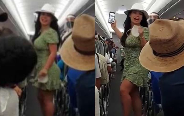 Los pasajeros de un vuelo comercial que pretendía despegar del aeropuerto de Cancún el pasado viernes, vivieron momentos de estrés y desesperación por el actuar de una pasajera que fue bautizada como #LadyCovid.La mujer, en aparente estado de ebriedad, se levanta de su asiento en reproche a una de las sobrecargos que le daba indicaciones de seguridad e higiene ante la emergencia sanitaria.#LadyCovid comienza a insultar a la tripulación y a los pasajeros, y aunque en un principio hubo risas, en un instante la situación se tornó más tensa cuando la mujer se quitó el cubrebocas."¡A todos nos vale el COVID!" reprochó la pasajera a los demás presentes.Mientras vociferaba también grabó su "espectáculo" con su teléfono, al igual que el resto de los pasajeros que luego lo publicaron en redes sociales con la etiqueta #LadyCovid.Después de varios minutos, la aerolínea no tuvo alternativa y luego de una serie de empujones y jaloneos lograron llevarla afuera del avión.En algunos clips que se comparten en redes sociales, se escucha que la propia #LadyCovid admite que está "borracha".En Twitter, #LadyCovid se volvió tendencia durante el lunes por las reacciones a los videos de la mujer pero también críticas al resto de los pasajeros que muy probablemente hacían turismo en medio de la pandemia.SR