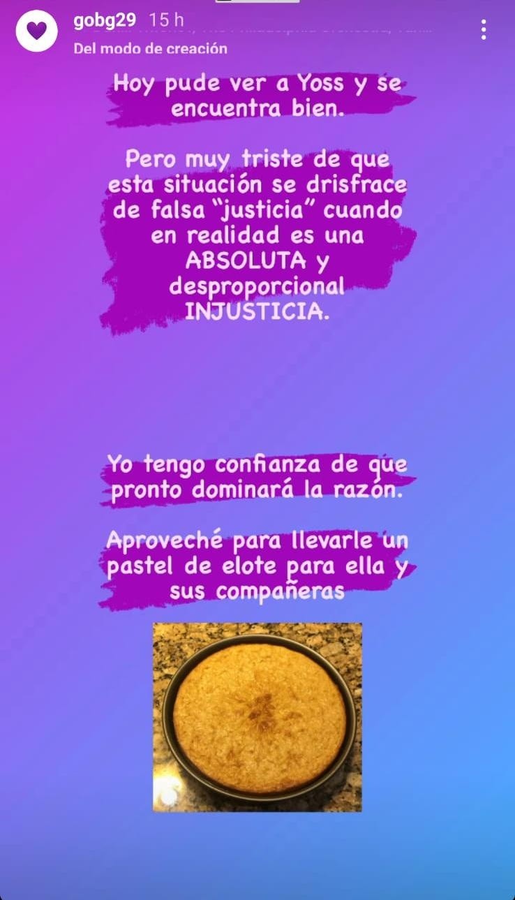 "Jamás he sido mala persona, jamás he dañado a alguien con intención, al contrario, creo que soy transparente y honesta, tanto que es un problema a veces", señala Yoseline “N” en la carta que supuestamente escribió a su novio desde el penal de Santa Martha Acatitla, tras ser vinculada a proceso por pornografía infantil.A través de redes sociales, Gerardo González, novio de la youtuber publicó un par de historias donde asegura que visitó a Yoseline “N” para llevarle un pan de elote.Señala que Yoseline “N” está triste porque su situación es una "absoluta y desproporcionada injusticia"."Sé que hay que aguantar vara, sé que esto se va a resolver, pero ¿cuándo?, ¿cuánto tiempo?, ¿Qué pasará en mi ausencia? No lo sé… ¿Qué tanto es suficiente? No lo sé", se lee en la publicación que supuestamente escribió la creadora de contenido."Tengo muchos defectos y áreas de oportunidad, pero jamás he sido mala persona, jamás he dañado a alguien con intención, al contrario, creo que soy transparente y honesta, tanto que es un problema a veces. Dicen que la vida no es injusta, ¿Tú qué crees?", dice.Un juez del Tribunal Superior de Justicia de la Ciudad de México (TSJ) vinculó a proceso a YosStop, quien es investigada por los delitos de pornografía infantil.Además, explicó que por la posibilidad que la joven tiene de evitar la acción de la justicia, sumado a que el delito que se le imputa es considerado como grave, ordenó que de momento se le mantuviera la medida cautelar de prisión preventiva oficiosa, por lo que permanecerá en el penal de Santa Martha Acatitla, y en la misma audiencia se fijó el plazo de dos meses para la conclusión de la investigación complementaria.Yoseline “N” fue detenida luego de que Ainara denunciara que la youtuber compartió en sus redes sociales un video en el que la víctima —quien en esas fechas tenía 16 años— fue violada por cuatro jóvenes, hecho que ella, su familia y su defensa consideraron como violatorio a los derechos humanos al exhibir la intimidad de la víctima.Sin embargo, llama la atención que mientras la youtuber está en prisión, de los agresores las autoridades de investigación no saben su paradero.Sobre este caso, la Fiscalía capitalina explicó que Yoseline "N" fue vinculada a proceso luego de que el representante social presentó datos de prueba que permitieron establecer que la imputada posiblemente cometió el delito de pornografía infantil en agravio de una persona menor de edad.Esto con base en las pruebas que presentó el agente del Ministerio Público, lo cual está previsto en el artículo 187 párrafo tercero del Código Penal para el Distrito Federal. Cabe señalar que el delito referido se persigue de oficio.De acuerdo con la investigación, Yoseline "N" publicó un video en el que aparece Ainara "N", de 16 años, mientras era agredida sexualmente por varios jóvenes en una fiesta. La indagatoria señala que la influencer publicitó y almacenó el material videográfico en sus redes sociales.En 2018, Ainara "N" fue agredida sexualmente y el video llegó a manos de la youtuber quien reprodujo el material, además creó un video para sus seguidores titulado "Patética Generación", en donde comenzó a atacar verbalmente a la víctima.La menor denunció en marzo pasado a quienes la violaron, identificados como Carlos, Julián, Axel, Nicolás y Patricio, menores de edad, y hasta el momento no han sido detenidos.AC