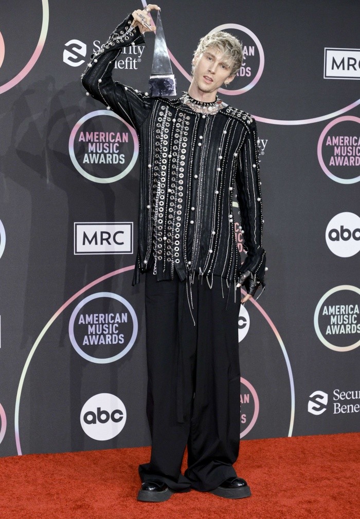 Este domingo se llevaron a cabo los American Music Awards 2021, donde al igual que en otros eventos mediáticos de este tipo la alfombra roja es todo un tema de conversación. Cada vez es más común ver que celebridades masculinas sigan el ejemplo de Harry Styles y opten por atuendos arriesgados, rompiendo estereotipos y explotando al máximo su creatividad, como lo harían estrellas femeninas como Lady Gaga o Cardi B.Aunque los American Music Awards 2021 no contaron con la presencia del británico Harry Styles, algunos de los invitados masculinos desfilaron en la alfombra roja de los premios luciendo escotes, joyería, y nail art.Definitivamente el estadounidense Billy Porter es una de las celebridades masculinas que ha revolucionado las alfombras rojas. En los Premios Óscar de 2019 fue sin duda el centro de atención al llevar un vestido largo, y en la Met Gala 2019 se convirtió en un ángel al utilizar un atuendo completamente dorado acompañado por un par de impresionantes alas que hacían honor a la temática de "Camp" de ese año.En los American Music Awards 2021 llevó lo que quizás ha sido uno de sus outfits más conservadores de los últimos años, sin embargo su sombrero estilo paraguas fue tema de conversación de la gala, al igual que sus uñas decoradas con pedrería al más puro estilo de Cardi B.Otro de los protagonistas masculinos de la noche fue Machine Gun Kelly, quien asistió acompañado por su hija de 13 años Cassie Baker. El cantante, que recibió el premio al "Artista Rock Favorito del Año" llevó un atuendo negro decorado por cadenas plateadas, y uñas postizas también plateadas que sin dejar de lado su estética gótica, nos dejan en claro que las uñas decoradas ya no son solo para mujeres.Esta no es la primera vez que el puertorriqueño Bad Bunny sorprende con su estilo extravagante en una alfombra roja. El compositor, que recibió el premio a "Artista Latino Masculino Favorito" y "Álbum Latino Favorito" en los American Music Awards 2021, sorprendió una vez más a la audiencia con un outfit fuera del molde de los pies a la cabeza. MR