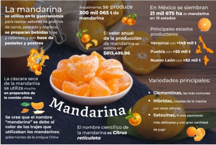 No es de extrañarse que la mandarina sea una de las frutas que muchas personas disfrutamos, desde su color naranja tan característico, su textura suave, o lo delicado de su estructura.Según la Secretaría de Agricultura y Desarrollo Rural esta particular fruta se considera nativa del suroeste de China, aunque otros afirman que procede de países del sureste asiático como Laos o Filipinas.A diferencia de lo que se cree, existen tres tipos de mandarina; las más comunes para nosotros son conocidas en Chile como “clementinas”, las híbridas,que son una mezcla de otros cítricos y por último, las cuales tienen origen japonés y son un poco más pequeñas, llevan por nombre“satsumas”.La temporada de mandarina se encuentra cada vez más cerca, podremos disfrutar de este cítrico desde principios de noviembre (otoño) hasta el mes de marzo. ¿Pero qué hace a esta fruta especial además de su sabor tan característico? El día de hoy te presentamos los beneficios de la mandarina:DiuréticasAyudan a eliminar la sal y el agua del cuerpo, lo cual previene la presión arterial elevada.Vitamina CSana heridas y forma tejido cicatricial, repara y mantiene el cartílago, los huesos y los dientes y ayuda a la absorción del hierro. El cuerpo no puede producir la vitamina C por sí solo, ni tampoco la almacena, por lo cual es recomendable ingerir alimentos que la contengan.Además contienen Vitamina A (favorece la buena vista), Calcio( ayuda a sus músculos, nervios y células a funcionar normalmente) y Fósforo (produce proteína para el crecimiento, conservación y reparación de células y tejidos).AntioxidantesFuncionan para prevenir o retrasar daños a las células (previene la oxidación de otras moléculas).Fibra Mejora el tránsito intestinal y ayuda a disminuir la absorción de colesterol, lo que quiere decir que el cuerpo absorbe menor cantidad de grasa. Así que ahora ¡ya lo sabes! prepárate para la deliciosa temporada de que se avecina. Si te interesó esta noticia y quieres saber más, entonces descarga y descubre INFORMAPlus, la aplicación digital de EL INFORMADOR, en donde tenemos contenidos exclusivos, seleccionados por nuestros editores, para darles una experiencia más completa a los lectores.Descarga la aplicación y pruébala GRATIS por treinta días.Para iOS: https://apple.co/35jaVgbPara Android: https://bit.ly/3gwVSEVSi eres suscriptor de EL INFORMADOR tu acceso está incluido, solicítalo al 33 3678-7777MB