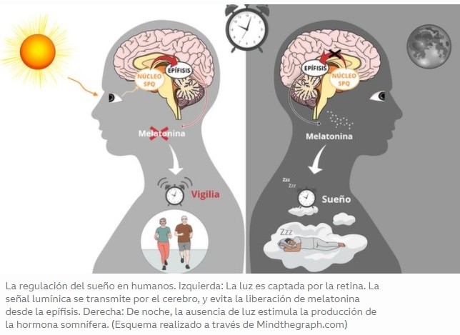 Cierto es que hay pocas cosas más placenteras que un sueño reparador tras "caer en los brazos de Morfeo". Ahora bien, otra gran verdad es lo molesto que es "pasar una noche en vela".Dormir bien es uno de los procesos fisiológicos con más impacto en nuestro bienestar diario. De hecho, la falta de sueño a largo plazo tiene efectos negativos sobre nuestra salud.El sueño se regula por la combinación de dos procesos. Por un lado, los ritmos circadianos. Por otro, la acumulación de sustancias inductoras del sueño en el cerebro, como la adenosina. Su cantidad depende de varios factores. Entre otros, el tiempo que llevemos despiertos (a más tiempo, más adenosina) o la calidad del sueño.Nuestro ritmo circadiano controla el denominado ciclo sueño-vigilia, dividido en una fase de descanso (oscuridad-sueño) y otra de alerta (luz-actividad). Por eso está relacionado con nuestro comportamiento a lo largo del día.El reloj circadiano ("cerca del día") de nuestra especie dura alrededor de 24 horas, y el organismo necesita sincronizarlo con señales medioambientales. El sincronizador externo más importante de nuestro ritmo biológico es el ciclo luz-oscuridad.La glándula pineal o epífisis es un agente cronobiótico. Esto quiere decir que sincroniza nuestro reloj interno con el ciclo luz-oscuridad. Ante la ausencia de luz, este pequeño órgano cerebral de solo 120 miligramos produce la hormona que nos conduce al mundo de los sueños: la melatonina.En algunos animales (peces, reptiles y anfibios) esta glándula se localiza bajo la piel y es capaz de recibir la información lumínica de forma directa. De ahí que también se la conozca como "el tercer ojo".Sin embargo, en la especie humana, así como en la mayoría de vertebrados, este órgano con forma de piña y tamaño de guisante se localiza dentro del cráneo. Por ello, necesita vías más complejas para saber si es de día o de noche.La retina registra la información lumínica, que llega al núcleo supraquiasmático (SPQ) del hipotálamo (ver esquema).Esta es la estructura cerebral encargada de controlar el ritmo circadiano a manera de reloj biológico. El núcleo informa a la glándula pineal, la estrella de este proceso, para que sintetice y libere melatonina en condiciones de oscuridad.Cuando nuestro reloj interno se desincroniza de los ritmos del medio ambiente, se desencadena un conflicto.Es lo que sucede, por ejemplo, cuando realizamos un viaje cuyo origen y destino tienen diferentes husos horarios (transoceánicos), desencadenándose el famoso jet-lag o síndrome del cambio de horario.En estos casos, es necesaria una fase de adaptación al nuevo ritmo adquirido, más difícil si viajamos hacia el este, por la pérdida de horas que conlleva.En ocasiones se recurre a la toma de comprimidos de melatonina para la sincronización con el nuevo horario.Otro ejemplo son los trabajos por turnos, en los que se altera el ciclo luz-oscuridad.Durante la noche se da una exposición artificial a condiciones de alta luminosidad que inhibe la producción de melatonina, confundiendo a este sistema.Estas situaciones podrían originar alteraciones del sueño y otros efectos perjudiciales.Tales efectos ocurren puesto que la melatonina no solo juega un papel fundamental en la inducción del sueño, sino que también tiene efecto hipotensor e inhibidor de la actividad tiroidea.Por si lo dicho fuera poco, esta hormona noctámbula también es un agente antioxidante, neuroprotector, modulador del sistema inmune y oncostático, ya que controla el desarrollo de tumores.De hecho, el Centro Internacional de Investigaciones sobre el Cáncer (IARC) ha clasificado los turnos de trabajo nocturnos como "probablemente carcinógeno para el ser humano" (el denominado grupo 2A). Existen varios estudios que apuntan a la existencia de una mayor incidencia de cáncer de mama en mujeres que trabajan en turnos rotatorios durante largos períodos de tiempo.Incluso la conducta sexual resulta afectada por la melatonina, cuyos niveles se elevan en otoño e invierno debido al alargamiento de las noches. Se produce así una atrofia ovárica y testicular que disminuye la producción de hormonas sexuales. Por lo tanto, se reduce la actividad sexual y reproductora. Estos efectos son más evidentes en los animales de reproducción estacional.Por último, se ha descrito que en períodos de poca luz existe una mayor incidencia de trastornos depresivos. Es el caso del trastorno afectivo estacional, más frecuente en latitudes más norteñas.Es importante destacar que ciertas alteraciones graves del sueño se relacionan con algunas enfermedades mentales. También que el insomnio es un factor de riesgo para desarrollar depresión. Sin embargo, los mecanismos subyacentes a estos trastornos son bastante complejos y dependen de otros muchos factores.Lo que sí es evidente es que una correcta higiene del sueño es fundamental para nuestro bienestar físico y psíquico. Con tal fin, la Sociedad Mundial del Sueño (WSS) propone una lista de diez sencillas recomendaciones. Entre ellas, incluye fijar un horario de sueño, controlar la ingesta de cafeína o hacer ejercicio de manera regular.Una vez conocida la relación entre la luminosidad y el estado anímico, podríamos decir que Descartes no andaba desencaminado cuando se refirió a la pineal como el mismísimo "asiento del alma". Según el filósofo, desde este recóndito lugar, en el centro del cerebro, el alma dirigiría la relación entre el cuerpo y la mente.Es posible que esta observación tan espiritual esté relacionada con la dimetiltriptamina (DMT), una sustancia con propiedades alucinógenas producida en la pineal y utilizada también como peligrosa droga de consumo. Por ello, la DMT se ha denominado "droga de los dioses" y se ha asociado con experiencias cercanas a la muerte.*Raquel Sánchez Varo es profesora ayudante doctor del Área de Histología de la Facultad de Medicina. Investigadora del Centro de Investigación Biom