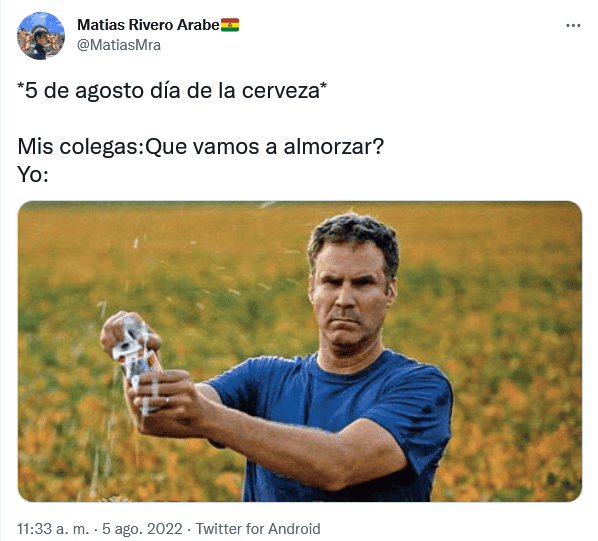 Hoy viernes 5 de agosto es un buen día para todos los productores y consumidores, pues se celebra el Día Internacional de la Cerveza.La conmemoración de la bebida alcohólica más popular del mundo no se ha hecho esperar, y en redes sociales los usuarios han compartido los mensajes más divertidos y los mejores memes para no dejar pasar la festividad.Si has sentido "sed de la mala" seguramente sabes el motivo por el cual se celebra la considerada por muchos como "bebida de los dioses".El origen de esta efeméride, señalan diversas fuentes, data del año 2007, en la ciudad de Santa Cruz, California, y en la actualidad es celebrada el primer viernes de agosto en más de 200 ciudades de 50 países, incluido México.De acuerdo con el estudio "Conociendo la Industria de la cerveza" que publicó el Inegi en 2021, México es uno de los principales productores y exportadores de cerveza a nivel internacional. OF