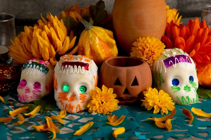 Poner el altar para celebrar el día de muertos es una de las tradiciones más relevantes y arraigadas que tenemos en México con la que podemos honrar a las personas que han dejado este mundo. Sus orígenes anteceden a la conquista española, en un tiempo en el que el morir marcaba, según las creencias, el comienzo de un viaje de cuatro días hacía Mictlán, el lugar del eterno descanso para los muertos. Fue a partir de la llegada de los españoles que se añadieron elementos del cristianismo, convirtiéndose en una muestra del sincretismo religioso entre ambas culturas.Algunos elementos como las flores de cempasúchil, el papel picado, las veladoras y el pan de muerto son colocados cada año en estas fechas con la intención de volver a compartir un momento con nuestros difuntos a partir de su recuerdo. Además de estos, repasamos a continuación algunos de los objetos indispensables que deben estar presentes en una ofrenda tradicional mexicana. Para el altar de este año, valdría la pena colocar una foto o retrato distinto de las personas a las que les dedicaremos nuestra ofrenda. La fecha en sí, se vuelve la oportunidad ideal para echar un vistazo a las fotos antiguas y tal vez, mandar a restaurar o digitalizar algunas de ellas para asegurarnos de preservar esos valiosos recuerdos, ya que después de todo, las fotos son junto a los objetos personales, el elemento que le otorga identidad al altar, pues nos señala a las almas que estamos honrando esa noche. Las velas alimentan el fuego, uno de los 4 elementos que deben estar presentes en nuestra ofrenda junto al agua, la tierra que será representada por las frutas que coloquemos y el viento representado por el papel picado. Como símbolo de la pureza, el agua está siempre esta ahí para aliviar la sed de las ánimas luego del largo trayecto de un mundo al otro, no importa si decides colocarla en un vaso, jarrón o copa. Además de ser uno de los objetos más coloridos y emblemáticos del altar, colocar calaveritas de azúcar y chocolate están en la ofrenda para representar la muerte. Una tradición realizada en los pueblos mesoamericanos antes de la llegada de los españoles, en la que reunian cráneos de prisioneros para colocarlos en fila como un tributo a los dioses. Conocida también como la flor de los veinte pétalos, el cempasúchil es por tradición la planta del día de muertos, pues además de ser una especie endémica de México, su particular aroma es tan fuerte que nuestros antepasados la usaban para guiar a los muertos en el camino a sus hogares. Está claro que la comida es en lo primero que pensamos cuando estamos colocando el altar para nuestros difuntos; sin embargo, más allá de poner los que en vida fueron sus platillos favoritos, la importancia de la tradición recae en cocinar por cuenta propia, como una hermosa forma de honrar a nuestros seres queridos y dialogar con los recuerdos. Este año puedes intentar por ejemplo, hornear tu mismo el pan de muerto que compartirás en familia. Símbolo del viento como uno de los cuatro elementos que deben estar presentes en el altar, el papel picado es en sus colores negro o morado una referencia el luto cristiano, mientras que en color naranja representa el luto azteca. La variedad actual de materiales y diseños vuelven todavía más alegre y colorida esta fecha. Suele usarse copal o incienso para alejar a malos espíritus y almas perdidas del lugar, de modo que las personas a las que estamos honrando puedan entrar sin peligro a su hogar. Según la tradición, la importancia de la sal está en ayudar a que el cuerpo del difunto no se corrompa en su trayecto entre ambos mundos. Por otro lado, el color blanco del mantel junto al blanco de la sal representan alegría y pureza. CP