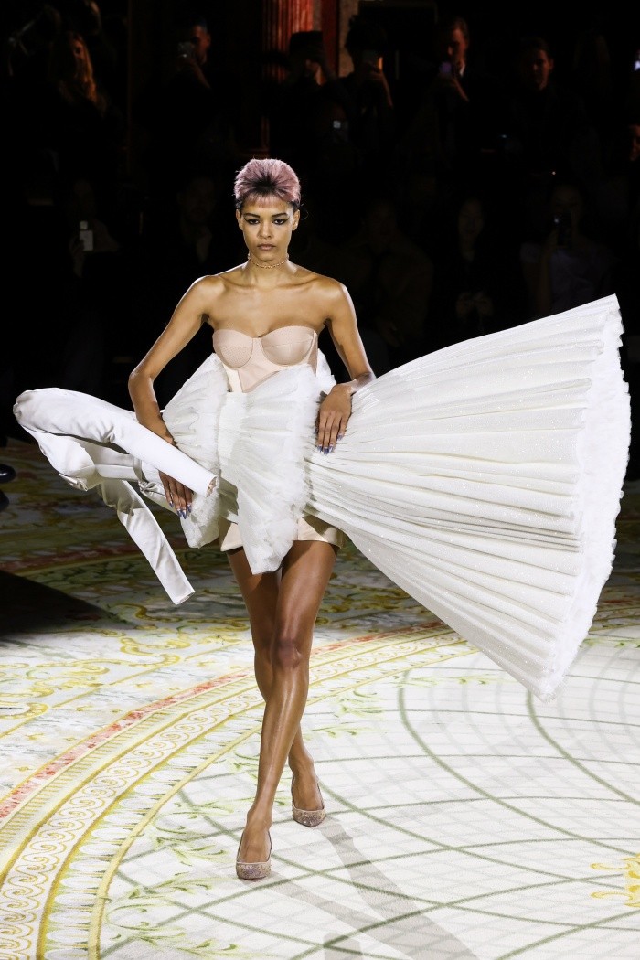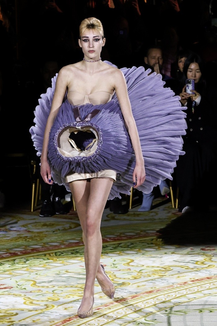 Las imágenes del día de hoy en la semana de Alta Costura de París que pasaran a la memoria de todos, serán sin duda las del desfile del duo de diseñadores holandeses, Viktor&Rolf quienes presentaron algunos de los nuevos diseños de su colección primavera verano, puestos al revés, atravesados en diagonal e incluso despegados del cuerpo de las modelos.Bajo la lujosa cúpula de un hotel parisino Viktor&Rolf, que suman más de 30 años jugando a ser los "enfants terribles" de la moda, presentaron una colección primavera verano lo más tradicional posible, con música clásica y unos vestidos de faldas ahuecadas, lacitos rosa en la cintura y mucha pedrería o lentejuelas.Salvo que regularmente esos vestidos aparecían "separados" de la modelo, que desfilaba imperturbable con un simple corsé y sus zapatos de tacón.Para Rolf Snoeren, es evidente que vivimos "una desconexión entre lo que percibimos en la pantalla de nuestro teléfono o en las redes sociales y la vida real" señalando que: "Hemos creado algo que de alguna manera es imposible, que desafía la gravedad, pero ahí está, no es una imagen".Se trata de jugar "con los arquetipos de la costura. Todos conocemos el corpiño, la falda larga. Lo que hemos hecho es darle un giro, de acuerdo con el lenguaje del siglo XXI, que es absurdo", añadió en la conferencia de prensa. mientras que su socio y pareja artística indicó, Viktor Horsting, indicó: "Describimos nuestro concepto como glamur conceptual: una parte de la colección es glamur y se puede vestir, otra es conceptual”.Con información de AFP