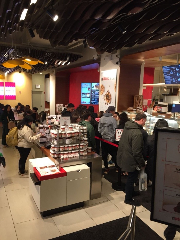 Cuando vamos de viaje nos gusta descubrir rincones y lugares únicos, así es que si te encuentras en Chicago y caminas por la tradicional avenida Michigan, después de esta larga caminata te puedes encontrar diferentes cafeterías, escaparates de tiendas, edificios y mucho más pero en el número 189, a unas calles del Millenium Park, puedes encontrar una de las cafeterías más concurridas y que despierta la curiosidad de los peatones, se trata de Nutella Café Chicago.Sin duda es una de las más populares para los amantes de la Nutella, donde puedes disfrutar las delicias en todas sus presentaciones, diversos cafés, souvenirs y es un lugar muy lindo y agradable para disfrutar solo o con amigos. Esta crema de avellana tiene fans por todo el mundo, así que nada más especializado que te preparen postres y bebidas de un ingrediente tan versatil como esta crema suave y deliciosa. Nadie pierde la oportunidad de tomarse algunas imágenes, salir con un clásico envase de Nutella en sus diferentes presentaciones, sentarse a disfrutar, pero también la compra de sourvenirs es un éxito porque se ha vuelto un punto de los más visitados, además de tener una ubicación privilegiada para los transeúntes. El menú es variado y delicioso que va desde baguettes con Nutella, yogurth con granola, crepas, waffles, helados y hasta platos de fruta acompañados de esta dulce crema; la incluyen también en sándwiches, sopas, bebidas y lo mejor son las especialidades de la casa porque no te podrás resistir. AA