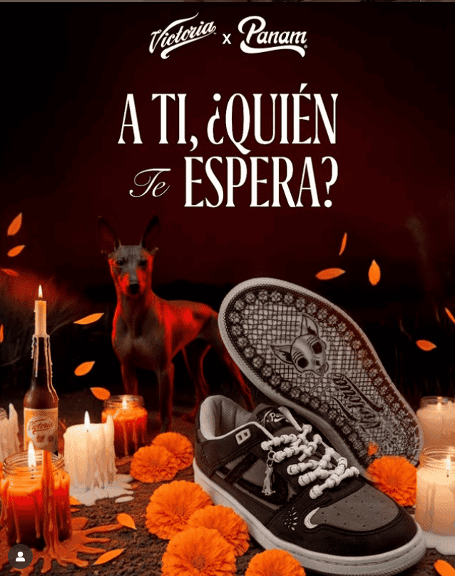 Por otro lado, la marca retoma su colaboración con cerveza Victoria a través de una versión especial dedicada al Xoloitzcuintle, símbolo ancestral del paso al más allá y en este modelo incorpora detalles que evocan la textura de la piel del perro sagrado, con su silueta grabada en la suela y accesorios metálicos personalizados. Las agujetas, que cuentan con diseños alusivos a huesos, completan una propuesta que une diseño contemporáneo con espiritualidad prehispánica.