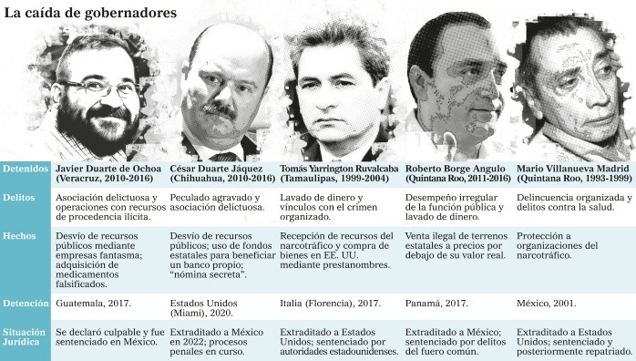 También ligado a Quintana Roo estuvo Mario Villanueva Madrid, procesado años antes por delitos relacionados con el narcotráfico, convirtiéndose en uno de los primeros exgobernadores sentenciados por ese tipo de vínculos. A Villanueva Madrid se le señaló por vínculos con el Cártel de Juárez. Tras huir en 1999, fue capturado en 2001 y extraditado a EU en 2010 por lavado de dinero.