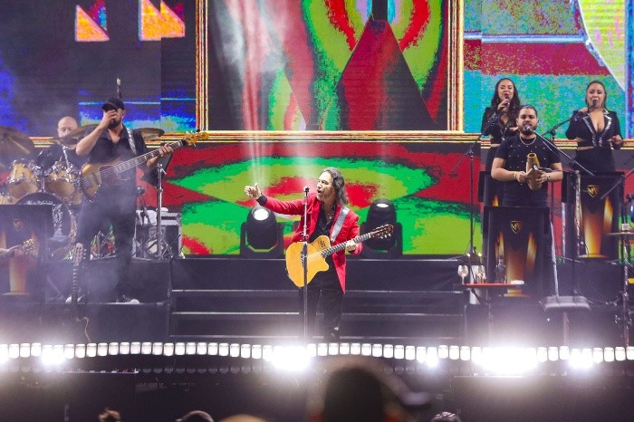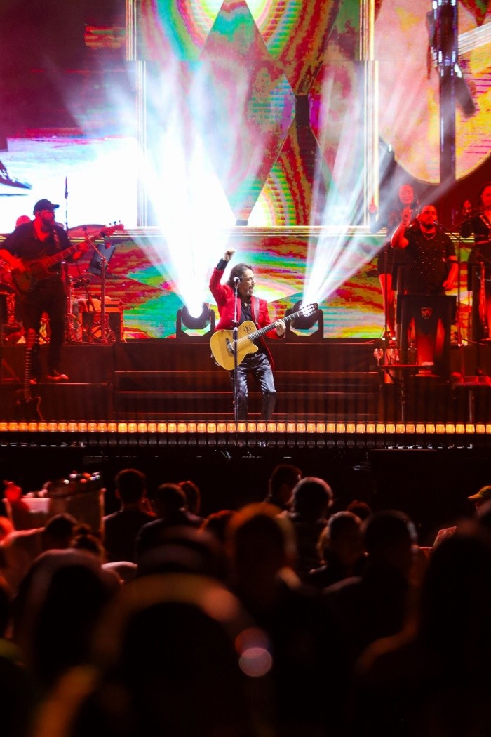 El estadio 3 de Marzo fue el escenario perfecto donde el cantautor originario de Ario de Rosales, Michoacán, Marco Antonio Solís -mejor conocido como El Buki- conquistó con todos sus éxitos a los tapatíos en una noche llena de amor, recuerdos, talento y una magia musical que nos reafirma por qué es uno de los favoritos de México, ahora con su Eternamente Agradecido Tour.Son sus letras, su música, el romanticismo, la interpretación y sus palabras: Todo. La presencia de Marco Antonio Solís dejó una gran huella en Guadalajara, con la virtud de poder reunir a diferentes generaciones que gozan y disfrutan su música; muchos, quizá porque la escuchaban en casa de sus padres desde niños y se volvieron fans o tal vez, ahora contemporáneos al Buki que fueron sus fieles seguidores desde sus inicios, porque es una banda que marcó una era en la música -e incluso en la moda- con una calidad y talento indiscutibles.La cita para el concierto de Marco Antonio Solís fue el sábado 27 de abril a las 9:00 de la noche, y poco a poco se fue llenando este recinto para que al salir el Buki, se encontrara con que los tapatíos lo esperaban para vivir, recordar, llorar y emocionarse con temas que han evolucionado en el tiempo y que marcaron las historias de amor -o dolor- de muchas parejas porque el repertorio es muy amplio.La noche estaba por comenzar y salió Marco Antonio con una sonrisa, en una escenario ya perfectamente preparado con dos pantallas laterales y una al centro; iluminación y toda su banda para entregarse por completo, así que vestido de negro y luciendo un saco rojo con algunos toques de brillo, sin olvidarnos de su clásica cabellera y barba que lo caracterizan, salió acompañado de su guitarra para dar las buenas noches a los tapatíos, agradeciendo a todos sus “hermanitos” el esfuerzo que hicieron para poder estar presentes en ese concierto.Los éxitos comenzaron con Se va muriendo mi alma, siempre acompañados no sólo por los coros de su escenario, sino con un público que lo siguió a todo pulmón en cada tema; continuando con Y ahora te vas, poniendo sentimiento en cada nota con Dios bendiga nuestro amor; muchas fueron las favoritas como Invéntame y los celulares iluminaban también esa noche al ritmo de la música interpretando estos temas que llegan al corazón; pero también la alegría con canciones como Morenita, y con los muy queridos O me voy o te vas, Cuando te acuerdes de mí y El Perdedor -que interpreta Enrique Iglesias- con temas ya conocidos de esta banda grupera creada en 1971, Los Bukis, al cantar Cómo me haces falta, haciendo un viaje a los recuerdos de este grande de la música, sin faltar otro clásico Cómo fui a enamorarme de ti y al entablar comunicación con el público, contó que una noche de 1986 tenía solo unas horas para descansar porque daría un concierto pero vino a su cabeza una melodía que no lo soltó -y qué bueno- para crear Tu cárcel, una de sus joyas musicales amadas por el público, que se escuchó en todos los rincones del Estadio 3 de Marzo, siguiendo con otros legendarios como Quiéreme y A dónde vayas.La noche se iba poniendo más intensa, que sin duda fue inolvidable para quien llevaba el corazón roto porque conmovía escuchar a todos los tapatíos cantar Si te pudiera mentir, que la gente ovacionaba, así que canción tras canción este concierto se sabía que este concierto sería inolvidable.El celoso fue otro de los temas de antaño para abrir su alma con A dónde vamos a parar, pero venían mucho más que hicieron vibrar como Si no te hubieras ido y muchos hacían en voz alta sus peticiones con sus favoritas, como una señora que desde el inicio gritaba “Mi eterno amor secreto”, así que finalmente cumplió y dedicó este tema a sus fieles seguidores, terminando con Más que tu amigo, con toda la alegría y ritmo, pero aunque parecía que se iba, no defraudó a su público y volvió, para cantar un par más y dejar al público feliz y extasiado, porque al salir, estos corazones se llevaron lo mejor de Marco Antonio Solís, una leyenda que aún puede verse en los escenarios gracias a este Eternamente Agradecido Tour que es capaz de conmover al corazón más frío.Dijo adiós, no sin antes agradecer a su banda, que con todo el profesionalismo lo respaldó esa noche, al igual que sus bailarinas, recordando aquellos shows inolvidables de la televisión, sin duda, un viaje maravilloso en el tiempo.AA