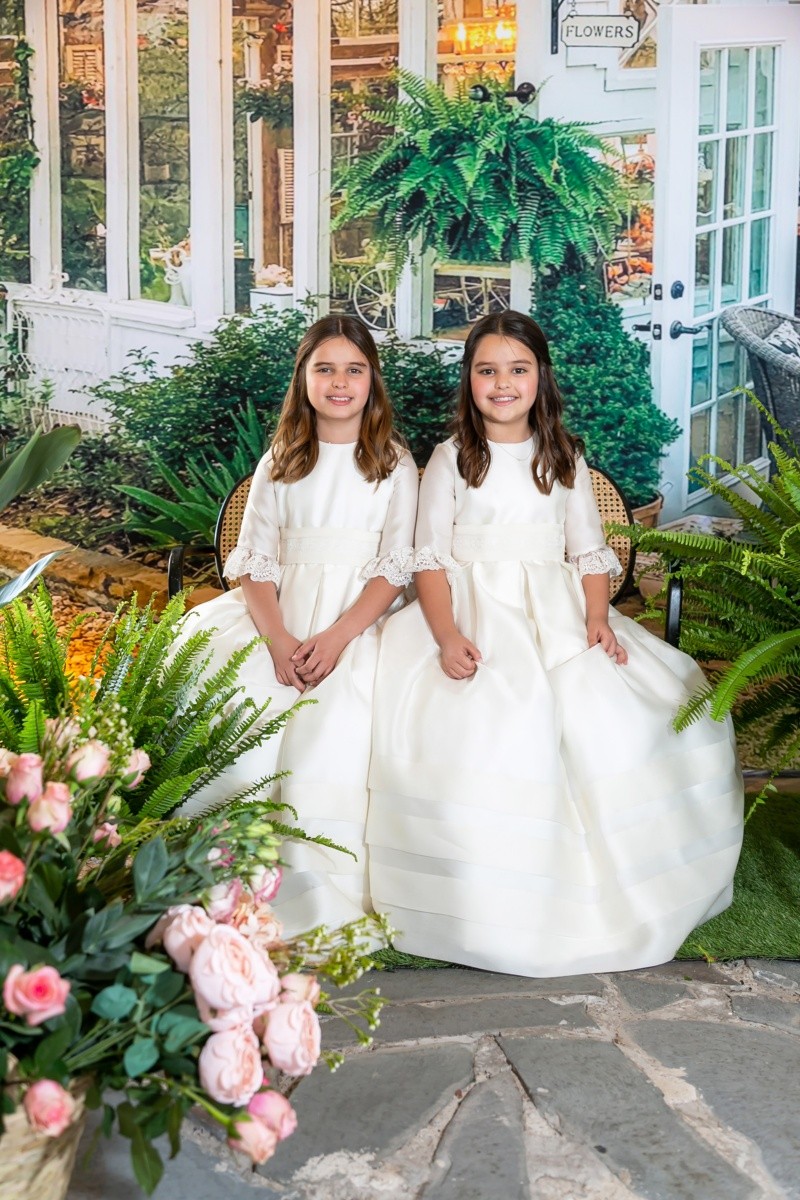 Desde el inicio de los preparativos estuvieron muy involucradas en la elección del diseño de su vestido, el tocado y grabar su vela, ya que utilizaron la misma vela y biblia de su bautizo, agregando a sus atuendos unos moñitos que eran de los ropones de su mamá, Dani Corona y su abuela, Mireya Esteban. Por fin se llegó la fecha, 11 de febrero, que coincidió con el mismo día de la Virgen de Fátima, como se los hizo saber el padre Jesús Bustos Barajas en el templo de San Javier de las Colinas, en una ceremonia muy bonita, emotiva y en la que participaron muchos niños en las ofrendas, como sus amigas, primas y sus hermanos.La música fue preciosa y el padre les habló esa mañana sobre la importancia de comulgar, como un alimento para el espíritu. La ceremonia fue a mediodía y estuvieron acompañados por sus papás, Daniela Corona Esteban y Javier Vázquez Vázquez, así como por sus padrinos, Ana María Ramírez Bustos, Emanuel González Ramírez, María Fernanda Cabrera Flores y Daniel Corona Esteban. Más tarde disfrutaron una recepción en Jardín Trasloma, a la que acudieron 180 adultos y 120 niños. El menú fue a elección de las niñas con comida italiana deliciosa, ensaladas, ravioles, camarones, fetuccini y un colorido candybar con postres hechos por su abuela materna, Mireya Esteban González, junto con su madrina, Ana María Ramírez, en la que hubo también mini postrecitos, tartas, pays, flankés y más tarde, frapuccinos, tostilocos, espiropapas, algodones, palomitas y churros rellenos.Los centros de mesa los hizo su otra madrina, María Fernanda Cabrera, que tiene un gusto exquisito por las flores, ya que fue una decoración como de cuento de hadas. Lo mejor de todo fue el ambiente, ya que los niños estuvieron fascinados con los juegos mecánicos, brincolines, tirolesa, lanchitas, DJ y las niñas fueron felices bailando en la pista, porque ya cerca de las 11:30 pm ellas no paraban de disfrutar.Por la tarde también hubo un mago y un profe de futbol, así que todos estuvieron divertidos al máximo. De bolos, Dani entregó una bombonera de cristal cortado con una vela en el interior y una licorera de cristal cortado con agua bendita a las familias que los acompañaron, mientras que las niñas recibieron una cadenita con su inicial.Entre los obsequios destacaron prendas de ropa, libros, certificados, perfumes, cadenitas, pulseras y sobrecitos, mismos que decidieron donarlos para una buena causa. Juliana y Dominica estaban radiantes y con toda la ilusión de poder celebrar su primera comunión. ¡Felicitaciones!AD