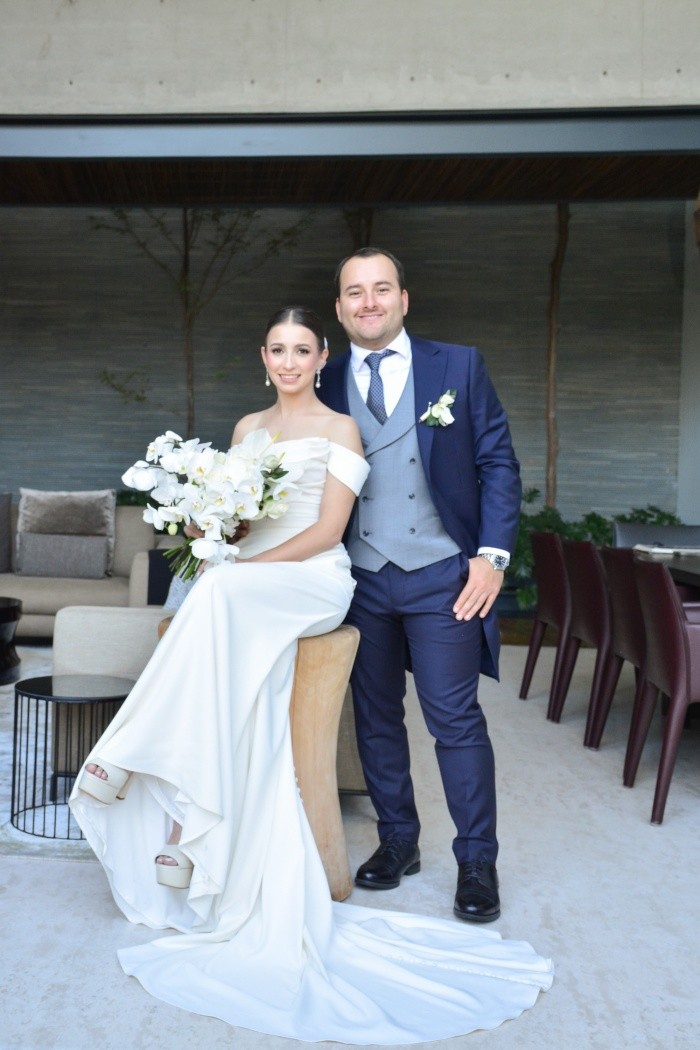 María Andrea Macías Barragán y Enrique Rivera Pérez se conocieron por una amiga en común de la universidad y se hicieron novios en plena pandemia. Dos años después, Enrique le dio el anillo de compromiso en la playa Majahua con un festejo familiar y posteriormente comenzaron los preparativos, así que la fecha fijada fue el 23 de febrero de 2024.Ese día tan especial estuvieron acompañados por los papás de la novia, Mónica Barragán Lara y Andrés Macías Morales, así como la mamá del novio, Ma. Dolores Pérez León. La misa se realizó en San Francisco Javier de las Colinas y el encargado de oficiar la misa fue el padre Lorenzo Sánchez Alvarado. Más tarde la celebración fue en Cobalto Eventos con 320 invitados, quienes disfrutaron un elegante banquete servido por Fuziones, mientras que el ambiente lo puso el DJ Alonso Jiménez.Esa noche tan especial eligieron para su vals la canción Antes que al mío y el tema de entrada fue Conquistar el planeta. En cuanto a la decoración destacaron los colores blanco y negro con detalles plateados, en armonía con las velas y los árboles del lugar. La feliz pareja disfruta su luna de miel en Nueva York, Alpes Suizos, Italia, Marruecos y España.RA