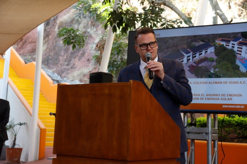 El Colegio Alemán de Guadalajara realizó una ceremonia de inauguración de los paneles solares instalados en dicha institución, los cuales forman parte de su Programa de Sostenibilidad Ambiental.Los anfitriones recibieron a los invitados, entre ellos Gerardo Enkerlin, presidente del Consejo de Administración del Colegio Alemán de Guadalajara; Alexander Kyllmann, representante Consejero del Pilar de Sostenibilidad Ambiental; Marc Budenz, director general del Colegio Alemán de Guadalajara; Liana Cerati, coordinadora del Programa de Sostenibilidad; Karen Alejandra Jackson, directora de Vinculación con Áreas Estratégicas; Diego Ede-Wynter Blanco, director de Áreas Naturales Protegidas y Especies Prioritarias; y Miguel Arturo Vázquez, director de Medio Ambiente de Zapopan.Después de la bienvenida se escucharon las palabras de Marc Budenz, Alexander Kyllmann y Liana Cerati, para después hacer la presentación técnica de los paneles solares por parte de Alfonso Ramírez, CEO de Leasol; luego se efectuó el encendido de bombilla con energía de paneles solares, a manera de corte de listón. Los asistentes disfrutaron de un coctel de inauguración con frutas de temporada, bollos, barras de bebida y café.El Colegio Alemán de Guadalajara desea ser modelo ante empresas y distintas instituciones educativas para promover y ser parte del cambio ambiental que el mundo necesita, porque “Gente pequeña en lugares pequeños haciendo cosas pequeñas puede cambiar el mundo”.Colegio Alemán de GuadalajaraBosque de los Cedros 32, Las Cañadas.Tel. 33 36 85 01 36.Página Web: www.alemangdl.edu.mxFacebook: ColegioAlemanGuadalajaraInstagram: @alemangdl