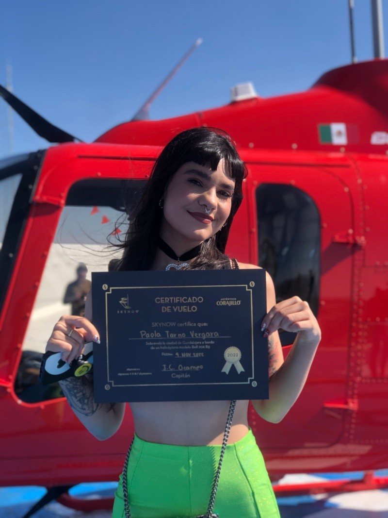 El pasado 4 de noviembre, la blogger Paola Tarno tuvo la oportunidad de conocer la ciudad desde las alturas a bordo de Skynow, empresa de tours en helicóptero que busca crear experiencias inolvidables en el aire y resaltar las maravillas de Guadalajara.Todo comienza en el módulo de Skynow ubicado en la segunda planta de Andares, afuera de El Palacio de Hierro. Allí, las personas que deseen volar en helicóptero pueden comprar su viaje, y actualmente, las personas que se acerquen y participen en una trivia pueden ganar un vuelo completo.Poco antes de abordar el helicóptero, los pasajeros se trasladan al Roof Top de la Torre Panorama Acueducto en donde se preparan para emprender el vuelo y disfrutan de un delicioso Auténtico Corajillo.El helipuerto está ubicado arriba de la Torre.Skynow ofrece diferentes opciones de tours redondos que vuelan por encima de increíbles paisajes en Jalisco como Tequila, Tapalpa, Punta Mita, Arandas, etc; una excelente idea para celebrar fechas especiales. Además, Skynow ofrece sus servicios de traslado médico y ejecutivo.Las personas que vuelen en Skynow comprando en el módulo de Andares, reciben una cortesía por un coctel en Cantina la 20, ubicada en Landmark.Instagram: @skynowmx Facebook: @skynowmx TikTok: @skynowmxAD