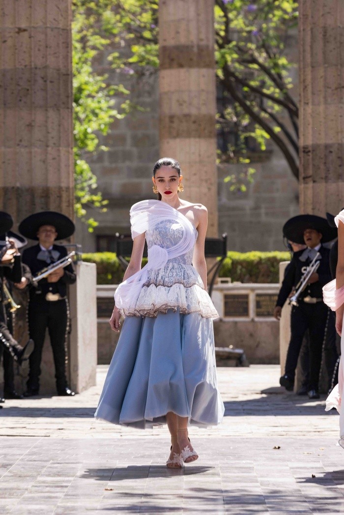 En el tercer día de Volvo Fashion Week México Guadalajara, la Rotonda de los Jaliscienses Ilustres se convirtió en el escenario perfecto para una de las pasarelas más significativas de la edición: la presentación de Benito Santos, quien reveló 12 Sones, su colección Otoño/Invierno 2026.Con esta propuesta, el diseñador tapatío rindió homenaje a la esencia musical de Jalisco desde una mirada contemporánea, sofisticada y profundamente emocional. Inspirada en los sones jaliscienses, considerados la columna vertebral del mariachi tradicional, la colección tradujo el ritmo, la fuerza y la identidad de esta herencia cultural en una narrativa visual llena de elegancia y carácter.A través de siluetas, texturas y movimiento, 12 Sones evocó el alma de instrumentos como el violín, la vihuela, la guitarra y el guitarrón, transformando sus resonancias en una expresión estética que celebró las raíces mexicanas con un lenguaje actual. La propuesta destacó también por una cuidada selección de textiles y una paleta cromática envolvente en tonos rosa viejo, malva, terracota, azul acero, gris humo y verde petróleo, complementados con acentos en champagne y marfil bordado que aportaron luz y contraste.La mañana adquirió una dimensión aún más especial con la participación de Ximena Sariñana, quien acompañó la presentación con música en vivo, sumando sensibilidad y fuerza a una colección donde moda y sonido dialogaron de manera natural.Más allá de la pasarela, la presentación de Benito Santos reforzó el espíritu de Volvo Fashion Week México Guadalajara: una edición construida desde la pertenencia, donde la moda no llega a la ciudad, sino que nace de ella. Así, en un espacio cargado de memoria, legado e identidad, Guadalajara reafirmó su lugar como uno de los polos creativos más relevantes de México y Latinoamérica. MR