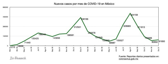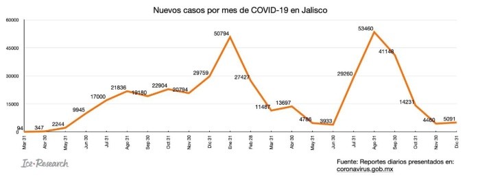 En el inicio de año estamos observando una cantidad exponencial de contagios que no se había registrado a lo largo de los 2 años que llevamos viviendo en pandemia.En la gráfica que aparece a continuación, en la que se muestran los contagios ocurridos mensualmente desde el inicio de la pandemia en nuestro país, se observan los 3 picos que se han presentado; siendo en agosto de 2021 cuando se registraron la mayor cantidad de casos: 504,158.Después de agosto inició un descenso gradual, hasta llegar a la cifra de 80,662 en noviembre. En diciembre se aprecia un ligero repunte, y ese mes concluye con 91,850 contagios.Sin embargo, los pocos días transcurridos de enero indican que se está presentando un rebrote muy fuerte, al día 8 ya se habían acumulado 134,066 nuevos registros. Por lo que si esta tendencia prevalece (lo cual es altamente probable), el primer mes del 2022 romperá récord de contagios y superará la cifra de agosto 2021.En Jalisco, como ha venido ocurriendo, el comportamiento de los contagios es similar al nacional, el pico más alto de contagios ocurrió en agosto y de ahí en adelante hay una disminución hasta noviembre y luego un ligero repunte. En la primera semana del año ya se han registrado 7,552 nuevos contagios.Las estadísticas nos indican claramente que la situación actual sigue siendo bastante complicada, aunque los discursos oficiales parecen menospreciar a la nueva cepa de Ómicron por considerarla menos letal que las anteriores.El que los contagios estén creciendo tanto, obedece precisamente a que la variante Ómicron es mucho más contagiosa que las variantes anteriores; sin embargo, los decesos crecen a un ritmo muy inferior, lo cual se asocia a que cerca de la mitad de la población mayor de edad ya ha recibido la vacuna. No obstante un crecimiento desmedido provocará inevitablemente saturación de servicios médicos, aunque el virus sea menos letal.Adicionalmente, existe otro factor en México que conduce al subregistro de contagios: no se están realizando suficientes pruebas diagnósticas dada la escasez de las mismas y la consecuente saturación de los puntos que las realizan. Si a lo anterior agregamos que quienes se realizan la prueba y tienen resultado positivo, no llegan a saber si están contagiados de Alfa, Delta u Ómicron, seguiremos dando palos de ciego.Por lo anterior, es un grave error el asumir que todos los contagios actuales corresponden a Ómicron, que por ser menos letal y por haber recibido la vacuna, ya se pueden relajar las medidas preventivas.Habrá que esperar lo que ocurra en los meses por venir, y mientras prevalezcan los contagios y las mutaciones de cepas, no debemos bajar la guardia, tenemos que seguir cuidándonos y cuidando a los demás.Para finalizar y retomar el tema del subregistro de contagios:El portal informativo del Gobierno Federal documenta al 8 de enero, 171,461 casos acumulados en el estado de Jalisco. El portal del Gobierno Estatal reporta 401,794 en la misma fecha. La diferencia es de 138 %, y supuestamente obedece a que en Jalisco se cuantifican las pruebas elaboradas en laboratorios privados y en los reportes del Gobierno Federal no se incluyen.La estadística nacional reporta al 8 de enero 4’113,789 casos confirmados. ¿Cuántos habrá en realidad?........¡Usted calcúlele!
