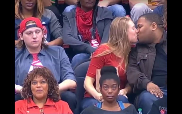 GUADALAJARA, JALISCO (15/MAR/2017).- Un nuevo video está inundando las redes sociales debido a la curiosa situación que presenta. En esta ocasión se trata de una pareja que es captada por la ''kiss cam'', esta cámara que enfoca regularmente a parejas durante los partidos de la NBA y los proyecta en las pantallas gigantes del estadio con la intensión de que tengan una muestra de cariño a través de un beso, pero que esta vez tuvo una respuesta poco esperada.Durante el pasado encuentro entre los Hawks de Atlanta y los Nets de Brooklyn, el pasado miércoles 8 de marzo, la ''kiss cam'' arrancó su habitual dinámica tomando a parejas entre los asistentes, que respondieron afectuosamente a la invitación. La mayoría de ellos, sorpresivamente, se miran en las pantallas e inmediatamente después besan a sus respetivos acompañantes, colaborando en la atracción que se efectúa en uno de los descansos del partido.Pero es hasta que se llega a una pareja de jóvenes que el video rompe el esquema. Una novia se emociona al verse sorprendida por la cámara y señala a su novio que son los siguientes en besarse. Él, con una gorra en la cabeza y un vaso de cerveza en la mano, parece restar importancia al suceso. La chica insiste una vez más, pero obtiene la misma respuesta de su cita. Con una expresión de indiferencia en su rostro, decide no hacer caso omiso de la petición y es cuando pone su atención en el hombre de su lado izquierdo. Al parecer, le solicita que sea él quien la bese para satisfacer a los asistentes que los observan. El sujeto responde afirmativamente y la besa en la boca.Los testigos observan la particular decisión de ambos jóvenes con rostros estupefactos, entre ellos el novio que se negó a dejar su bebida para atender a la joven. Al terminar el breve beso, el primer sujeto reclama a la mujer su decisión, ella sonriendo sólo observa su reacción cuando este se levanta de su asiento para retirarse del lugar. Es justo ese momento en que parece darse cuenta de la gravedad de su arranque. El público alrededor no puede contener las carcajadas ante el penoso escenario. Ella continúa dando algunas explicaciones al sujeto, pero la ''kiss cam'' finaliza su transmisión para regresar a la cancha.El video ha sido compartido en distintas plataformas y pronto se ha hecho viral. Sólo en un canal de YouTube, el material presenta, hasta el momento, casi 400 mil reproducciones desde el pasado 10 de marzo, fecha en que fue compartido. EL INFORMADOR / ÓSCAR ÁLVAREZ