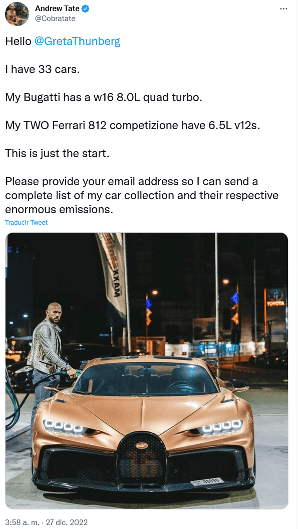 El polémico "influencer" británico Andrew Tate comparecerá este viernes junto con su hermano ante un tribunal de Bucarest, la capital de Rumania, tras ser acusado de forzar a varias mujeres a prostituirse, informó a la AFP una vocera de la fiscalía antimafia.Andrew y Tristan Tate "están detenidos por 24 horas", declaró Ramona Bolla. Ambos "serán presentados" ante el tribunal de Bucarest, con una propuesta para que permanezcan a detención provisional durante 30 días, añadió."A principios de 2021, (los) cuatro sospechosos formaron un grupo criminal organizado con vistas a cometer el delito de trata de seres humanos en el territorio de Rumania, pero también en otros países", declararon los fiscales de la Dirección de Investigaciones sobre la Delincuencia Organizada y el Terrorismo (DIICOT) de Rumania en un comunicado fechado el jueves.Los hermanos, junto a dos rumanos detenidos, presuntamente traficaban, reclutaban y explotaban a mujeres coaccionándolas para que realizaran "actos pornográficos con el fin de producir y difundir dicho material" en internet.Las autoridades han identificado hasta ahora a seis de las presuntas víctimas y se registraron varias localidades en el país en el marco de la investigación, iniciada en abril.Tate, un excampeón de kickboxing que se mudó a Rumania con su hermano hace unos años, apareció en el programa de televisión Big Brother en 2016, pero fue eliminado de la competencia tras la difusión de un video que lo muestra pegando a una mujer.Sus redes sociales fueron suspendidas por declaraciones misóginas, aunque Twitter volvió a reactivar su cuenta recientemente.El miércoles, se enzarzó en una discusión con la activista climática sueca Greta Thunberg en Twitter después de felicitarse en redes sociales por emitir muchos gases de efecto invernadero con su colección de coches.La detención se dio luego de que publicara una fotografía donde se aprecia una caja de pizza, que dio con la ubicación donde se encontraba.OF