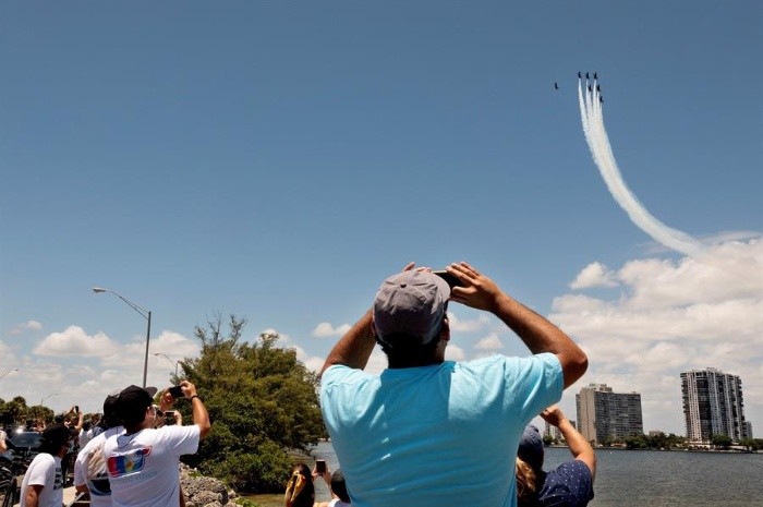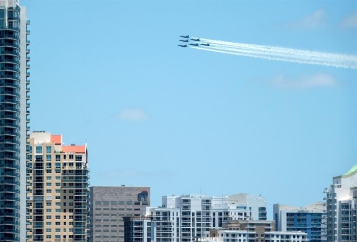 Seis aviones del Ejército estadounidense sobrevolaron este viernes los hospitales de varias ciudades del sureste de Florida, el área más afectada del estado por la pandemia de COVID-19, como parte de la iniciativa nacional "Salute 365" para agradecer a los profesionales de la salud por su trabajo en la crisis sanitaria.Los seis aviones F/A-18 Hornet, de los "Blue Angels" (Ángeles azules) salieron al filo de la una de la tarde de Boca Ratón, 77 kilómetros al norte de Miami, y avanzaron en formación hasta Homestead, en el extremo sureste de Florida.En su recorrido a baja altura, atravesaron las ciudades de Fort Lauderdale y Hollywood, ambas en el condado Broward, y luego continuaron hacia Miami, en Miami-Dade, este último donde se han registrado 13 mil 511 casos confirmados del nuevo coronavirus de los 39 mil 199 del estado, y 468 muertes de las mil 669.En el trayecto de aproximadamente 25 minutos, los aviones cazabombarderos sobrevolaron numerosos hospitales en cuyas terrazas y techos se apostaron médicos y enfermeras para saludarlos.La misión del tour es conectar "con nuestros héroes nacionales, rindiéndoles tributo al brindarles reconocimiento, aliento y apoyo", señala el sitio web de National Salute to America's Heroes (Saludo nacional a los héroes de Estados Unidos), que organiza la exhibición.En el viaducto Rickenbacker, que conecta Miami con las islas Virginia Key y Key Biscayne, centenares de personas se concentraron para ver pasar a los aviones, mientras agentes policiales intentaron sin éxito dispersarlos, según pudo observar Efe.La inmensa mayoría de los curiosos llevaba, sin embargo, la máscaras para la prevención de contagio del nuevo coronavirus SARS-CoV-2.El tour de "Salute 365" ha incluido además de Florida, Nueva York, Nueva Jersey, Pensilvania, Texas y Luisiana, entre otros estados, para agradecer a aquellos "que arriesgan su propia seguridad para cuidar a los miembros de la comunidad", según la organización.JM