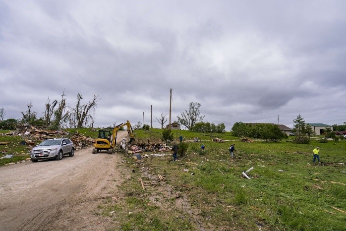 La serie de tormentas que azotan en días recientes a regiones del este y centro de Estados Unidos ha dejado una estela de daños y espectaculares imágenes como la de un tornado que ayer se registró en el estado de Kansas.En Twitter se compartió un video del gran tornado que pasó a las afueras de la población de Lawrence, donde se observa una pared de lluvia.El fenómeno alcanzó vientos máximos de 170 kilómetros por hora y atravesó 51 kilómetros de varias poblaciones de Kansas antes de elevarse, según un reporte preliminar del Servicio Nacional del Clima estadounidense.El tornado pasó por el área de Kansas City, Missouri, colindante con el estado de Kansas, derribó árboles y cableado eléctrico, dañó casas e hirió a por lo menos una decena de personas.La agencia de manejo de emergencias del condado de Douglas, en Kansas, dijo en Facebook que 15 personas resultaron heridas, tres de ellas de gravedad. Agregó que un tornado que azotó un vecindario en las afueras de Lawrence.La ronda más reciente de condiciones climáticas dañinas en el centro de Estados Unidos se produjo un día después de que las tormentas violentas mataran a una persona e hirieran a por lo menos 130 en Indiana y Ohio.Mark Duffin, de 48 años, se enteró por su esposa y un reportaje televisivo que un tornado poderoso se dirigía hacia su casa en Linwood, en el estado de Kansas, a unos 48 kilómetros al oeste de Kansas City. Lo siguiente que supo es que las paredes de su casa se estaban cayendo.Duffin le dijo al diario Kansas City Star que agarró un colchón, siguió a su hijo de 13 años al sótano y se protegió él y a su hijo con el colchón mientras la casa se derrumbaba a su alrededor."Estoy contento de haber encontrado a mis dos perros vivos", dijo. "Mi esposa está viva, la familia está viva, yo estoy vivo. Así que, eso es todo".La zona metropolitana de Kansas City, de alrededor de 2.1 millones de habitantes, parecía haberse librado del impacto directo que se temía a primera hora de la tarde, cuando el servicio meteorológico anunció una emergencia por tornado.Aun así, la tormenta obligó a evacuar el Aeropuerto Internacional de Kansas City. La gente se refugió durante una hora aproximadamente en un túnel que conduce al estacionamiento.Los vuelos se retrasaron más de cinco horas debido a los escombros en el aeródromo. El portavoz del aeropuerto Joe McBride dijo que los escombros incluían ollas, paneles de pared y otros artículos que aparentemente volaron por el aire a casi 80 kilómetros del tornado de Linwood.Los vuelos finalmente se reanudaron alrededor de las 12:15 a.m.IM