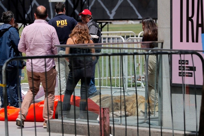 Los alrededores del Palacio de La Moneda, la sede de gobierno de Chile, han sido escenario de centenares de protestas, pero la ocurrida el viernes fue inédita: los dueños de un zoológico colocaron a metros de una de sus puertas a un león muerto, de cuyo deceso responsabilizan a un organismo gubernamental que obligó a sedarlo.A un costado de Zeus, de 14 años, se desplegó un letrero en el que se leía: "El gobierno mata animales. No más pitutos (trabajos ocasionales) en el SAG" en referencia al Servicio Agrícola y Ganadero que es el responsable del desarrollo de la agricultura y la ganadería en el país.César Chanampa Armijo, dueño del zoológico de Los Ángeles, 530 kilómetros al sur de la capital chilena, aseguró a la prensa que Zeus murió la víspera luego de que el SAG los obligó a anestesiarlo para leer el microchip de identificación del animal."El SAG nos obligó a anestesiar y capturar a todos nuestros animales para hacerles una lectura de chip. Nosotros, a través de certificados médicos, le dijimos al SAG el riesgo de anestesiar a los animales, igual que a los seres humanos... Hasta ayer alcanzamos a sedar seis animales y uno falleció", declaró.En un comunicado el SAG señaló que la sedación de animales es un procedimiento común que se hace para desarrollar un proceso de revisión seguro. "Queremos enfatizar que dicho procedimiento fue realizado por equipo del propio zoológico, como lo establece el protocolo". Zeus murió durante la sedación.El organismo estatal criticó que Zeus hubiese sido expuesto porque "atenta contra la dignidad animal" y que estudiará posibles acciones legales contra el zoológico.La policía cubrió al animal con una frazada e interrumpió el tránsito vehicular por una arteria que pasa por un costado de la sede de gobierno. Más tarde Zeus fue retirado del lugar.JM