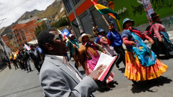 "La Biblia vuelve a palacio", declaró la presidenta interina de Bolivia, Jeanine Áñez, al tomar posesión el pasado 12 de noviembre. Unos días antes, Fernando Camacho, una de las principales voces en el proceso que llevó a la renuncia de Evo Morales, entró Biblia en mano al mismo edificio declarando que "Dios" volvería al "gobierno".Los dos son católicos y contaron con el apoyo de sectores conservadores de la Iglesia y de líderes evangélicos para debilitar a Morales.En los últimos años, menciones a Dios y de pasajes bíblicos parecen haberse multiplicado en los discursos políticos, y el apoyo evangélico fue instrumental en el ascenso de los líderes de derecha en América Latina y Estados Unidos.En Brasil, los evangélicos son la principal base electoral del presidente Jair Bolsonaro. En Estados Unidos no es muy diferente: Donald Trump contó con el apoyo de las iglesias pentecostales para salir elegido.Para el historiador estadounidense Andrew Chesnut, autor de decenas de libros y artículos sobre el crecimiento de las iglesias pentecostales, la fuerte influencia de los evangélicos en el ascenso y caída de líderes es una de las principales "tendencias" de la política actual en el continente americano."Hasta en México, donde la población pentecostal es pequeña, de apenas un 8%, un partido político fundado por un pastor pentecostal ayudó al actual presidente, Andrés Manuel López Obrador, a llegar al poder", le dijo Chesnut a BBC News Brasil."La influencia política evangélica es una de las tendencias políticas más importantes de las últimas cuatro décadas en el continente americano", agrega el profesor de la Virginia Commonwealth University.Pero, ¿qué explica esa influencia creciente de la religión en la política de países del continente? ¿Y por qué las iglesias evangélicas han conseguido cada vez más adeptos entre los latinoamericanos?En entrevista con BBC News Brasil, Chesnut enlistó 5 factores que ayudan a responder a esas cuestiones:El continente americano ha vivido una acentuada caída en el número de católicos, al mismo tiempo que se registró un gran aumento en la población evangélica.Según el Pew Research Center, principal centro de investigación sobre religiones, de 1900 a 1960, los católicos conformaban el 94% de la población de América Latina.Pero ese porcentaje cayó drásticamente. Un estudio del mismo centro de 2014 mostró que 84% de los entrevistados crecieron como católicos, pero apenas un 69% aún se identificaba como tal.En contraste, solo 9% de los latinoamericanos crecieron como evangélicos, pero el 19% dice seguir esa religión actualmente.Para Andrew Chesnut, quien estudia el movimiento pentecostal desde hace 25 años, una característica importante acompaña al crecimiento del número de evangélicos en el continente americano: el compromiso político de líderes e integrantes de esa religión.El investigador destaca que los católicos son un grupo más "heterogéneo", con segmentos ligados a la izquierda y otros a la derecha. Esa pluralidad, en la práctica, dificultaría una movilización política coordinada."Dentro del catolicismo, tienes sectores conservadores, ligados al Opus Dei, por ejemplo, y otros más progresistas, como los miembros de la Teología de la liberación. Entonces, hay más diversidad y eso hace más difícil la tarea de lograr una alianza católica", explica."Y los evangélicos son más homogéneos políticamente. Eso facilita la unión y las alianzas para elegir determinados políticos".Los ejemplos más recientes y evidentes de la fuerza evangélica en política son la elección de Jair Bolsonaro en Brasil y la caída de Evo Morales en Bolivia. Los dos episodios contaron con el apoyo crucial de sectores evangélicos.En la caída de Morales, fue una figura ligada al ala más conservadora de la Iglesia católica y a los líderes evangélicos la que ganó protagonismo: Luis Fernando Camacho.Camacho ejerce como presidente del Comité Cívico Pro Santa Cruz, una entidad que reúne a cerca de 200 instituciones, entre asociaciones de residentes, trabajadores de derecha y empresarios. El comité funciona en la ciudad más poblada de Bolivia, Santa Cruz de la Sierra, y se le llama "gobierno moral".Sus constantes menciones al "poder de Dios" y su costumbre de citar fragmentos de la Biblia han hecho que la prensa internacional se refiera a él como el "Bolsonaro boliviano".Él fue el principal articulador de las protestas en las calles que culminaron en la retirada de apoyo de la policía y las fuerzas armadas al gobierno de Morales. Camacho suele iniciar sus discursos con una oración y, al entrar en el antiguo Palacio de Gobierno, en La Paz, pocas horas antes de la renuncia del expresidente, depositó una Biblia junto a la bandera boliviana.Para Chesnut, Camacho y Bolsonaro tienen características en común."Bolivia es interesante, porque es un país más predominantemente católico que Brasil. El 70% de los bolivianos son católicos. Pero, en la salida de Morales del poder, vimos una fuerte influencia evangélica", analiza."Camacho es más o menos como Bolsonaro. Él es católico, pero tiene una gran influencia pentecostal y tiene a los pentecostales como grandes aliados. Su discurso es 100% pentecostal".La senadora Jeanine Áñez, quien se proclamó presidenta interina de Bolivia tras la salida de Evo Morales, sigue la misma línea. Ella entró al Palacio de Gobierno, en La Paz, con una enorme Biblia, y juró detrás de un altar montado con velas y la imagen de Jesús crucificado."Un aspecto importante del papel que la religión ha ejercido en los gobiernos latinoamericanos es la existencia de una convergencia entre los evangélicos y los católicos conservadores", dice Andrew Chesnut.Aunque los ejemplos brasileño y boliviano son contundentes, el profesor estadounidense dice que la tendencia de crecimiento de la influencia evangélica en los gobiernos no es característica solo de América Latin