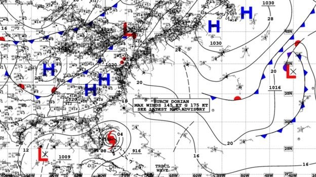 El ciclón, ahora categoría 4 en la escala Saffir-Simpson (de un máximo de 5), lleva más de 24 horas descargando viento y furia sobre el noroeste del archipiélago bahamés.Desde que tocó tierra en Elbow Cay al mediodía del domingo se mueve a una velocidad extremadamente lenta: apenas ha superado los 7 kilómetros por hora (km/h) y desde la madrugada del lunes se redujo a 2 km/h.Para que se tenga una idea, la velocidad al caminar de un ser humano promedio es de 6 km/h.Esto, en sí mismo, es un grave problema.A menor velocidad de traslación, mayores serán sus potenciales daños, dado que los fuertes vientos y lluvias permanecerán sobre los mismos lugares por más tiempo.Según el Centro Nacional de Huracanes de Estados Unidos (NHC, por sus siglas en inglés), esta situación puede conducir a una "destrucción extrema" en Bahamas.De hecho, según reportes preliminares, al menos 13,000 viviendas quedaron destruidas en las islas y cayos afectados.A las 15:00 GMT del lunes, la tormenta continuaba desplazándose por el noreste de la isla de Gran Bahama, con vientos máximos sostenidos de 250 km/h, según NHC.La costa este de Estados Unidos se encuentra ahora en la trayectoria de Dorian.Sin embargo, todavía los meteorólogos no se ponen de acuerdo qué parte se llevará los mayores impactos.De acuerdo con el NHC, se pronostica que la tormenta experimentará un movimiento lento hacia el oeste-noroeste el martes, seguido de un giro gradual hacia el noroeste.Sin embargo, la lentitud del movimiento de Dorian hace también inciertos los pronósticos.Pero ¿cómo se explica que el huracán se desplace más lento que una persona?Para explicar la lentitud de Dorian es preciso entender cómo se mueven los huracanes.De hecho, es un aspecto que muchas personas desconocen: que en realidad, los huracanes no se mueven. O al menos, no se desplazan por sí solos.Son movidos por las corrientes de vientos globales, que están influidas por los gradientes de presión de la atmósfera.O sea, de no existir esas corrientes de vientos y presiones, los huracanes no se moverían.Para que tengas una idea de cómo funciona, imagina que un huracán es como un barco de papel que soltamos en un río crecido: las corrientes lo llevaran de un lado a otro y si se encuentra alguna barrera en su camino, se detendrá hasta que las corrientes lo lleven hacia otro rumbo.La única diferencia es que en la atmósfera no hay cauces y las corrientes pueden llevarlo en cualquier dirección.Pero aunque los huracanes no se mueven por sí solos, sí giran sobre un centro de bajas presiones y tienden a moverse hacia el norte, por la rotación de la Tierra.Hay una fuerza de la naturaleza que quizás conociste en alguna clase de física: el llamado efecto Coriolis.Descubierto en el siglo XIX, es la responsable de que el agua, cuando se va por el desagüe de tu ducha o fregadero, siempre rote en el sentido contrario a las manecillas del reloj en el hemisferio norte y a favor, en el sur.Esta fuerza es la responsable de que el lado derecho de los huracanes sea más fuerte, pero también de que tiendan a subir hacia el norte.Esta tendencia hacia el norte permite además una de las principales funciones de los huracanes en el ciclo de la Tierra, que es trasladar la energía desde el ecuador hacia los polos.Pero en ese cometido, el huracán debe lidiar también con los sistemas climáticos de latitudes medias que pueden influir en su desarrollo y movimiento, que son los responsables de que Dorian prácticamente se haya detenido.Desde que comenzó a alejarse de Puerto Rico la pasada semana, la trayectoria de Dorian ha estado marcada por dos eventos atmosféricos.Por una parte, una vaguada o baja superior que se extiende sobre Cuba y que, según el CNH, se mueve hacia el oeste y forma una fuerte cresta subtropical sobre el Atlántico occidental.Esto, de acuerdo con los pronósticos, obligaría al huracán a girar hacia el noroeste en su trayectoria hacia Florida.Pero para que eso pase, el ciclón necesita que un sistema de altas presiones que hay actualmente sobre el norte del Atlántico le abra el paso.Se le llama el anticiclón de Bermudas y, como su nombre lo indica, sus fuerzas repelen las bajas presiones de los ciclones tropicales.Es este factor el que ha mantenido a Dorian casi estático sobre Bahamas y su potencial retirada hacia el este del Atlántico es lo que prevén los meteorólogos como condición para que el huracán gire más hacia el norte.La buena noticia para Florida es que los huracanes son como los carros: necesitan frenar para girar.El hecho de que Dorian se mueva tan despacio sobre Bahamas -y que eventualmente se detenga allí por algún lapso de tiempo- es señal de que se encuentra a punto de comenzar a desviarse hacia el norte.Sin embargo, esto implicará que la destrucción sobre el noroeste de Bahamas no tendrá tregua a lo largo del lunes y el martes.Según explica la Administración Nacional Oceánica y Atmosférica de Estados Unidos, la velocidad de avance de los huracanes es muy dependiente de la latitud en la que se encuentran.Y típicamente, a medida que recurvan (giran más hacia el norte) desde su trayectoria al oeste, usualmente reducen su velocidad.Sin embargo, que prácticamente se detengan no es un fenómeno tan habitual.El año pasado, el huracán Florence también redujo notablemente su velocidad y Mitch, en 1998, registró una velocidad de 0 km/h por un lapso de seis horas.El huracán que se movió más rápido fue Emily en 1987: alcanzó los 110.48 km/h mientras se movía sobre el Atlántico Norte.***¿Ya conoces nuestro canal de YouTube? ¡Suscríbete!