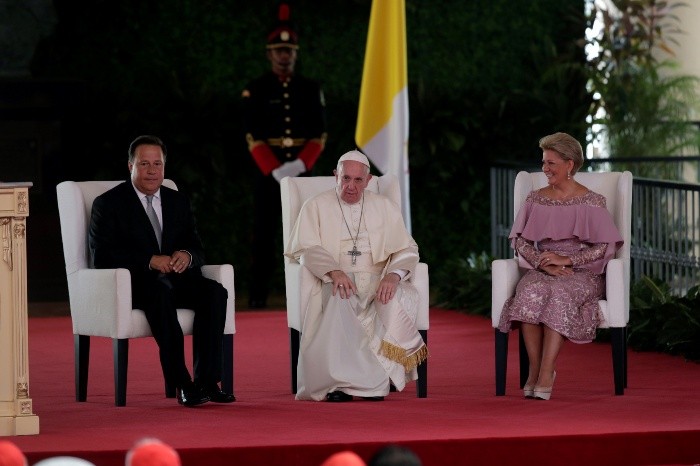 El Papa Francisco evitó referirse a la profunda crisis política e institucional de Venezuela en los mensajes de sus dos primeras actividades públicas de este jueves durante la visita que inició ayer miércoles en Panamá.La única referencia a Venezuela se registró antes del mediodía, en un encuentro con los obispos centroamericanos en la Iglesia de San Francisco de Asís, en el casco antiguo de la capital panameña.Al final de su alocución se escuchó que alguien preguntó si entre los asistentes había algún obispo de Venezuela. De inmediato, se oyó que alguna persona respondió: "No hay".Luego de que oyó la respuesta de que en el auditorio "no hay" nadie de Venezuela, el Papa se levantó de su asiento en el púlpito y se quedó de pie para saludar, uno a uno, a los obispos y demás autoridades de la jerarquía eclesiástica de la Secretaria Episcopal de América Central (Sedac), integrado por Panamá, Costa Rica, Nicaragua, Honduras, El Salvador, Guatemala y Belice.Uno de los primeros en saludar al pontífice fue el cardenal nicaragüense Leopoldo Brenes Solórzano. Casi que chocando cabeza con cabeza, para que nadie les escuchara, ambos se quedaron conversando durante varios minutos.El Papa se acercó en diversas ocasiones al oído de Brenes, en un intercambio en el que el cardenal nicaragüense también se aproximó algunas veces al oído de Francisco. Ambos se despidieron con emotividad.Según la información oficial, 480 obispos de 156 países se encuentran en Panamá con motivo de la visita del Papa. Uno de ellos es el cardenal venezolano Baltazar Enrique Porras Cardozo, arzobispo del estado de Mérida, en el occidente de Venezuela.En este contexto, la crisis venezolana está en el entorno de la visita del Papa a Panamá, sin ser parte oficial de la agenda.El Papa llegó este miércoles en la tarde a Panamá en medio del agravamiento del conflicto en Venezuela, donde el opositor Juan Guaidó, presidente de la Asamblea Nacional, juró este miércoles como presidente interino para ratificar el desconocimiento a Nicolás Maduro como gobernante. La expectativa es que Francisco se referirá en Panamá a Venezuela.En su viaje hacia Panamá, el Pontífice volvió a cuestionar a Trump por su plan de levantar un muro en la frontera entre Estados Unidos y México. "El miedo nos vuelve locos", afirmó.Pero el silencio del Papa sobre los presidentes de Nicaragua, Daniel Ortega, y Maduro se convirtió en Panamá en uno de los factores esenciales en los corrillos políticos y diplomáticos en torno a la visita de Francisco a esta ciudad.En ese escenario, la pregunta acerca de si en el auditorio había algún delegado de la jerarquía católica de Venezuela generó una mayor atención política sobre las consultas que el Papa podría estar desplegando en Panamá, en absoluta discreción.Francisco acude en Panamá a la Jornada Mundial de la Juventud (JMJ), que empezó el martes pasado con miles de jóvenes de todo el mundo sobre los retos de las nuevas generaciones. La visita y la JMJ terminarán el próximo domingo.La primera actividad papal fue cerca de las 1000: horas locales (09:00 en el centro de México) en una ceremonia de bienvenida en la entrada principal del Palacio de las Garzas, sede de la Presidencia de Panamá. Francisco realizó luego a una visita al presidente de Panamá, Juan Carlos Varela, y después tuvo un encuentro con las autoridades, Cuerpo Diplomático y representantes de la sociedad en el Palacio Bolívar, sede de la cancillería de este país.El primer discurso del Papa en Panamá fue en la cancillería y tampoco se refirió al problema de Venezuela. Por la tarde, cerca de las 18:00 asistirá a la una actividad de acogida de la JMJ en el Campo Santa María la Antigua, conocido como la cinta costera y que es un gigantesco sector de áreas verdes y vías frente a la bahía de Panamá que fue acondicionado como enorme plazoleta para varias de las actividades del Papa y de la JMJ.JB