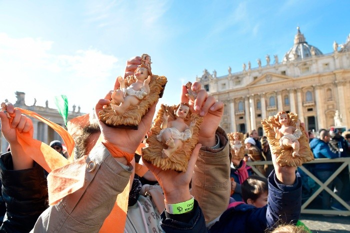 El Papa Francisco cumplió hoy 81 años y, aunque en el Vaticano no se celebran estas efemérides, el Pontífice ha recibido palabras de afecto y felicitaciones y se han organizado actividades solidarias en su honor.En el Vaticano no se celebran los cumpleaños sino los onomásticos; sin embargo, los mensajes de felicitación hacia el Papa argentino se sucedieron, sobre todo por medio de las redes sociales.Al asomarse a la ventana del Palacio Apostólico para el tradicional rezo del Ángelus seguramente pudo ver una enorme pancarta que algunos fieles llevaron a la plaza de San Pedro y en la que podía leerse "Muchas felicidades, Santidad".Al concluir el rezo, cientos de fieles corearon su nombre y le felicitaron a lo que él, sonriente, respondió con un "muchas gracias".Por su parte el presidente italiano Sergio Mattarella se sumó a las felicitaciones y le agradeció sus mensajes sobre "la importancia de poner en el centro de la política a las personas y a la familia" y su frecuente defensa de la dignidad en el trabajo.El jefe de Estado italiano subrayó que, con sus viajes por todo el mundo, el papa ha invitado a "perseguir con coraje y determinación caminos de diálogo y de reconciliación para sanar las heridas sociales y superar las tensiones internacionales".Pero no todo han sido palabras de afecto sino, como el propio Papa predica, también se ha pasado a los hechos en favor de los más necesitados.Bajo el lema "Felicidades, Papa Francisco," un grupo de estudiantes de Gastronomía organizó el sábado en Roma una comida a la que invitaron a personas desfavorecidas y en la que colaboraron la Diócesis de Roma y diversos entes, que ofrecieron los productos.El artista urbano Maupal, autor de algunos grafiti romanos sobre el pontífice, también le deseó un feliz día con un dibujo plasmado en una tarta de una pastelería próxima al Vaticano y en el que le muestra cargando a sus espaldas un planeta agrietado y remendado.Con su otra mano el Papa sujeta una maleta en la que puede leerse la palabra "valores" y de la que asoma una bufanda roja y azul, los colores del San Lorenzo de Almagro, su equipo de futbol.Los medios de la Santa Sede también le han felicitado por medio de las redes sociales: el diario oficial, "L'Osservatore Romano", lo hizo con la fórmula en latín "ad multos annos" (por muchos años) y la Secretaría de Comunicación con un "Feliz Cumpleaños" en seis idiomas.Este 17 de diciembre fueron los más pequeños quienes protagonizaron la jornada del Pontífice, que comenzó el día con un encuentro con los niños del Dispensario Pediátrico "Santa Marta", acompañados por su padres y voluntarios.Ante ellos, subrayó que la alegría de los más pequeños es "un tesoro" que hay que proteger, sobre todo en el ambiente familias, y recomendó hacerles hablar con los abuelos y los ancianos."Por favor, que no sean niños desarraigados, sin memoria de un pueblo, sin memoria de la fe, sin memoria de las muchas cosas bellas que ha hecho la historia. Sin memoria no hay valores", consideró.Se despidió de los muchachos deseándoles un "día con mucha fiesta" y les recomendó comer "cuatro metros de pizza".Los niños también estuvieron muy presentes durante el Ángelus, ya que el Papa llevó a cabo la tradicional bendición de los "bambinelli", pequeñas representaciones del Niño Jesús que los niños portan cada año a la Plaza de San Pedro para que sean bendecidos.