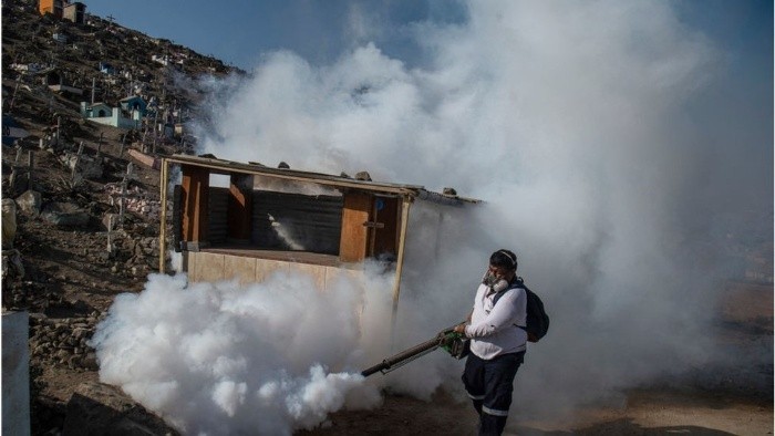 El doctor Carlos Hurtado avistó una piscina inflable en el fondo del patio.El epidemiólogo boliviano les dijo a los dueños de la casa que buscaba comprobar si había criaderos del mosquito Aedes aegypti, transmisor del virus causante del dengue. Pidió permiso para acercarse a la piscina y preguntó desde cuándo no cambiaban el agua."Desde hace tres meses", respondió el propietario.Cuando el doctor Hurtado sacudió los extremos de la piscina, que debía medir unos 10x5 metros, miles de mosquitos se elevaron del agua.En pleno verano austral y en época de lluvias, las paredes de la piscina estaban llenas de larvas y pupas de los mosquitos que transmiten el dengue en el departamento de Santa Cruz, en el oriente de Bolivia.Entre enero y febrero de 2023, Santa Cruz registró alrededor de un 75% de los 6.455 casos confirmados de dengue que el gobierno boliviano reportó a la Organización Panamericana de la Salud (OPS) durante las primeras seis semanas epidemiológicas del año.Santa Cruz tiene la mayor tasa de contagio de Bolivia, el país sudamericano donde más se ha incrementado el dengue a principios de este año, con un aumento de 1.247% en el número de casos confirmados con respecto a las primeras seis semanas de 2022.Bolivia forma parte de una tendencia regional de aumento en la transmisión de dengue con respecto al año anterior.Las estadísticas de la OPS indican que el contagio también se ha incrementado en las primeras semanas del año en México y Centroamérica, en la región andina y en los países del "Caribe latino", que incluye a Cuba, República Dominicana y Puerto Rico.56 personas han muerto por dengue en la región en lo que va de año, según la OPS.En medio de hospitales públicos saturados y operativos masivos de fumigación contra el mosquito transmisor Aedes aegypti, algunos gobiernos han adoptado medidas especiales para afrontar el brote.Perú declaró estado de emergencia en 13 de sus 24 provincias, mientras que las autoridades sanitarias de Bolivia emitieron alerta roja epidemiológica en La Paz, tras el aumento de la transmisión en Santa Cruz.Como ocurre cada año, la estación de lluvias ha renovado los criaderos de agua estancada donde se reproduce el mosquito que transmite el virus y causa síntomas como fiebre, dolores de cabeza, náuseas y vómitos, sarpullidos, inflamación de los ganglios y dolores corporales, generalmente detrás de los ojos.Sin embargo, algunos factores que potencian el contagio han cambiado. Expertos analizan en qué consisten y cómo afectan la transmisión y tratamiento del dengue.El aumento de la temperatura es el primer factor que incide en el contagio del dengue, especialmente en zonas donde no solía ser endémico."El tema es el cambio climático, las temperaturas son más altas", afirma la pediatra y salubrista María del Carmen Calle Dávila, secretaria ejecutiva del Organismo Andino de Salud, que agrupa y coordina a las autoridades sanitarias de Bolivia, Chile, Colombia, Ecuador, Perú y Venezuela."Esto favorece todo el ciclo de reproducción de los mosquitos y nos conduce al dengue".En el caso de Perú, por ejemplo, ha llovido más y han aumentado las temperaturas, explica la epidemióloga Karim Pardo, directora ejecutiva de Prevención y Control de Enfermedades Metaxénicas y Zoonosis del Ministerio de Salud en Lima.Asegura que este año hay mayor cantidad de nuevos distritos afectados por la transmisión de dengue."La dispersión del vector ha sido mucho mayor. Antes teníamos incremento de casos en estos meses en 4 o 7 departamentos. Ahora tenemos contagio en 13 al mismo tiempo".El hecho de que Brasil haya cerrado el año pasado con 2,3 millones de casos de dengue ha tenido un impacto negativo en la transmisión de la enfermedad entre los países vecinos, sostiene la especialista.El dengue tiene un comportamiento estacionario, es decir, el contagio está determinado por las condiciones del entorno donde habita el mosquito Aedes aegypti.La OPS advierte que la transmisión suele aumentar durante los meses más cálidos y lluviosos. Por ello, en el hemisferio sur el contagio se incrementa durante la primera mitad del año, mientras que en el hemisferio norte se eleva en el segundo semestre.Las interrupciones en el servicio de agua corriente y la falta de desagües obliga a las personas a almacenar agua limpia que acaba convirtiéndose en un entorno ideal para los criaderos del mosquito, señala la doctora Calle Dávila desde el Organismo Andino de Salud."La gente necesita ciertas condiciones de vida para evitar la enfermedad, como recibir agua por tuberías y saneamiento", dice Calle Dávila en una llamada telefónica desde Perú.La hembra del mosquito Aedes aegypti es capaz de colocar sus huevos en las paredes de envases, donde pueden sobrevivir durante meses, explican los Centros para Control de Enfermedades de Estados Unidos (CDC, por sus siglas en inglés).Una vez que los huevos se sumergen en agua, a lo largo de ocho días cumplen el ciclo de vida de larva a pupa hasta convertirse en mosquitos voladores, que se reproducirán dentro de la vivienda donde se encuentren.Por ello, es fundamental botar el agua para que no se estanque, limpiar los recipientes con frecuencia para remover los huevos, larvas y pupas del mosquito, así como mantenerlos limpios y cerrados."Justo ahora estamos viendo protestas por falta de agua en zonas de Perú que no se encuentran en las provincias, sino en la periferia de Lima Metropolitana", asegura la doctora Calle Dávila.En Perú, el estado de emergencia entró en vigor el jueves 23 de febrero y se mantendrá al menos durante 90 días en los departamentos de Amazonas, Ayacucho, Cajamarca, Cusco, Huánuco, Ica, Junín, Lambayeque, Loreto, Madre de Dios, Piura, San Martín y Ucayali.El doctor Carlos Hurtado, gerente de la Unidad de Epidemiología de la gobernación de Santa Cruz, en Bolivia, apunta que sus visitas a zonas con alta transmisión de dengue en la localidad del oriente bolivi